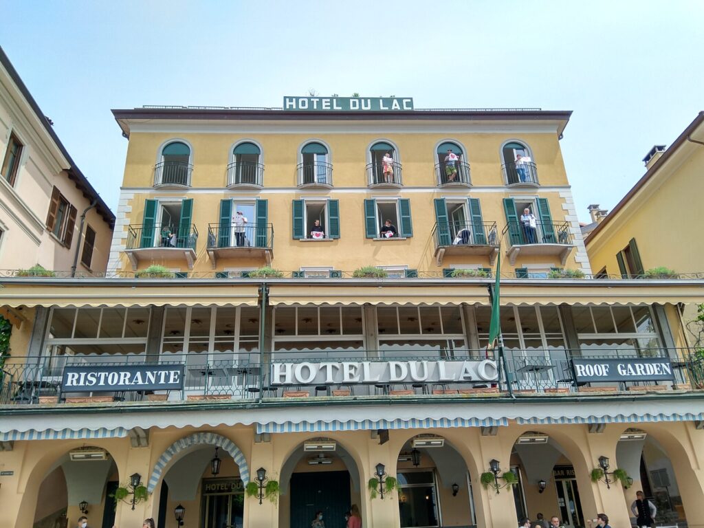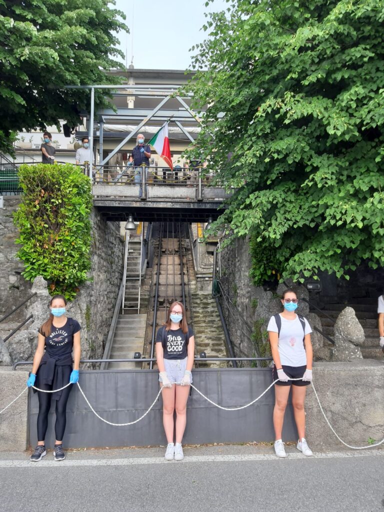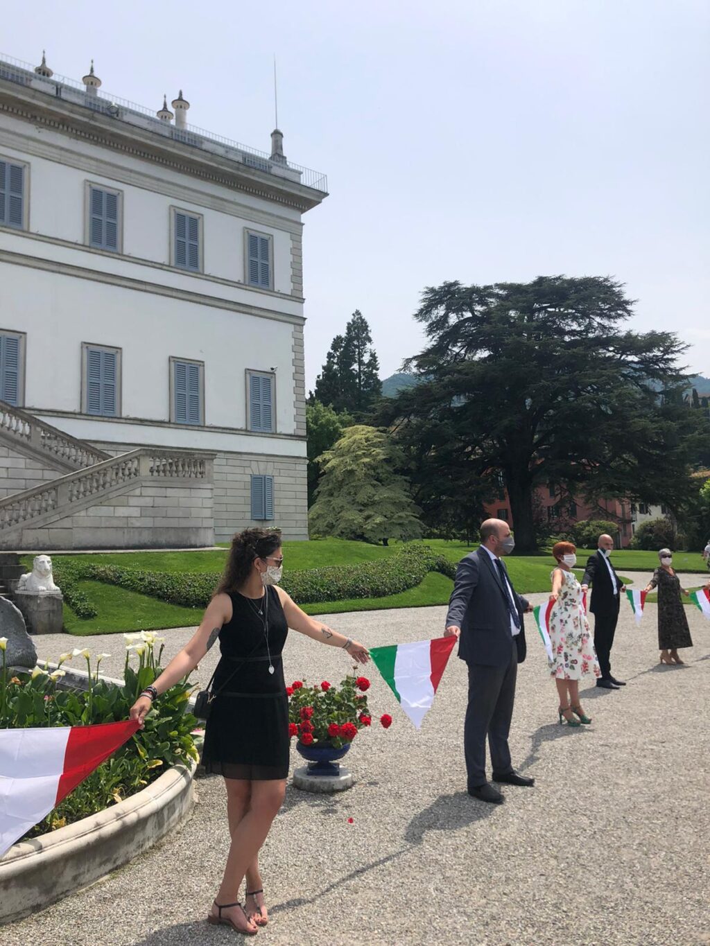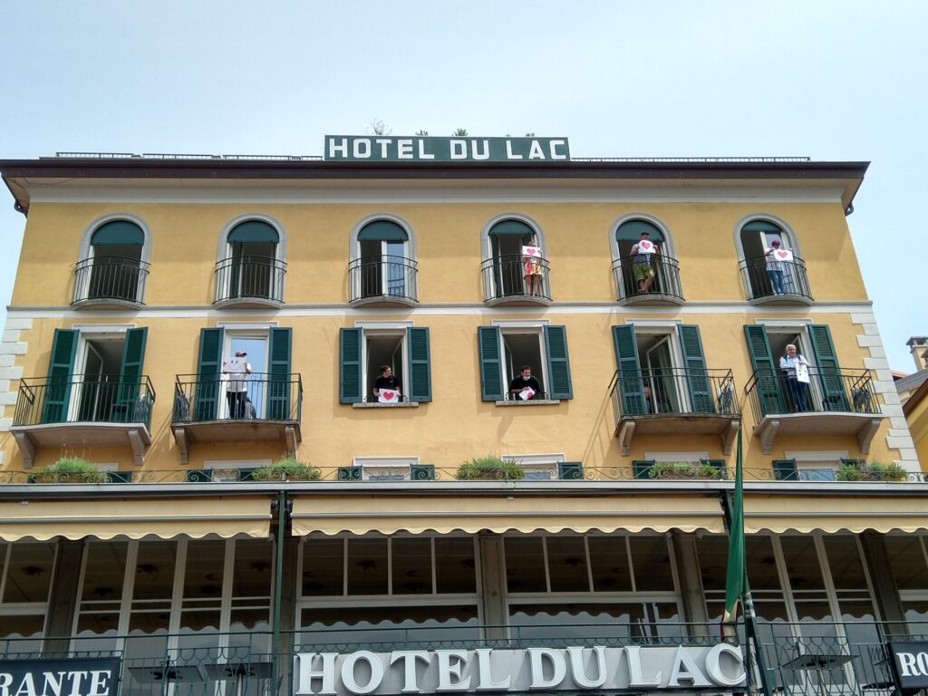 I droni hanno ripreso i cittadini in tre location differenti: in divisa da lavoro sul lungolago di piazza Mazzini, affacciati alle finestre di un hotel in centro paese e vestiti con abiti eleganti all’interno dei Giardini di Villa Melzi.