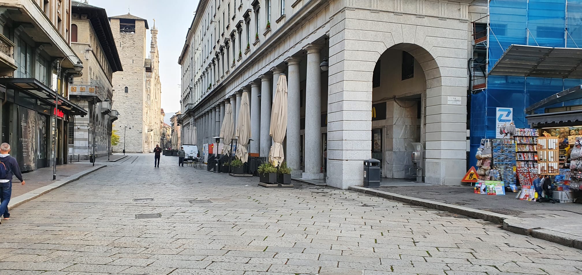 Il che non toglie, però, che ben più di tre indizi – diciamo la trentina abbondante di fotografie nella fotogallery qui sotto – fanno una prova: al netto di chi poteva e di chi lavorava, il centro di Como oggi era svuotato, a tratti metafisico.