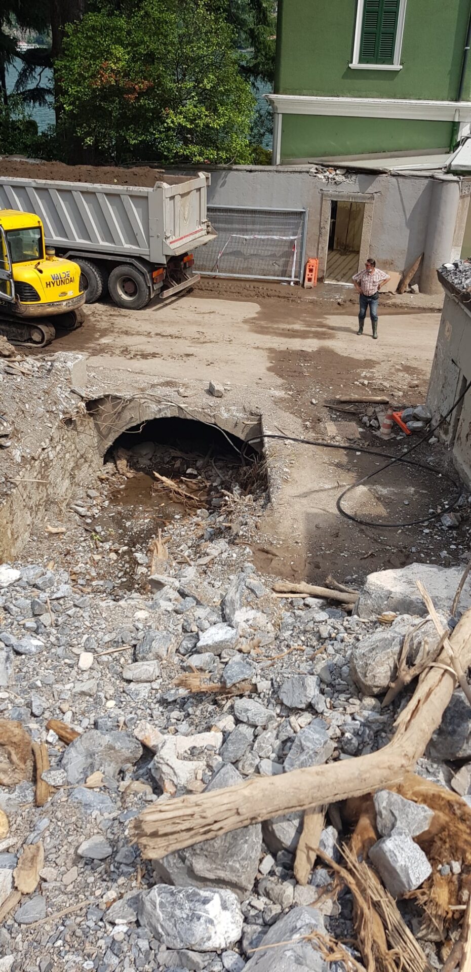 Dopo l’alluvione del 27 luglio abbiamo dovuto subire un secondo deflagrante evento alluvionale il 4 agosto. Ogni volta con grande fatica abbiamo provveduto al recupero dello scarico a lago che è il primo intervento da eseguire. Uno scarico ai tempi a cielo aperto e successivamente coperto.