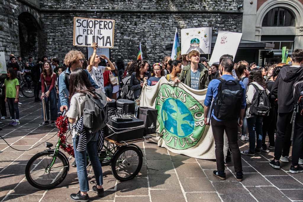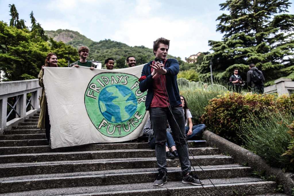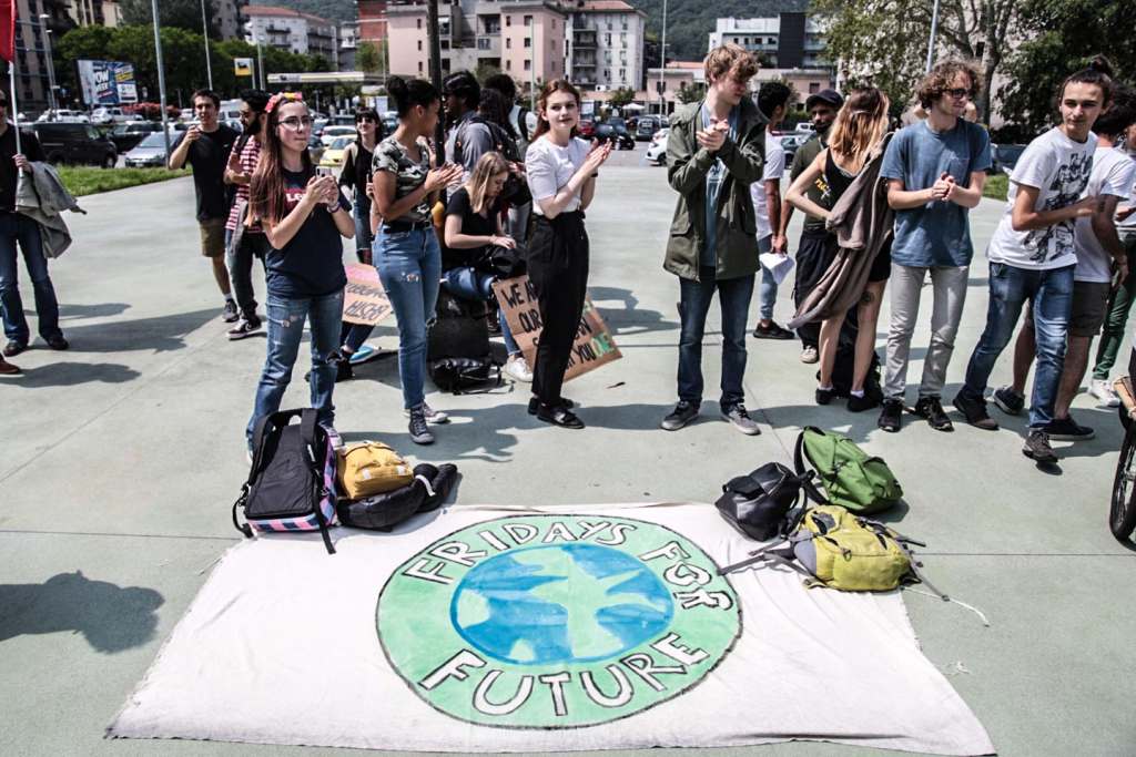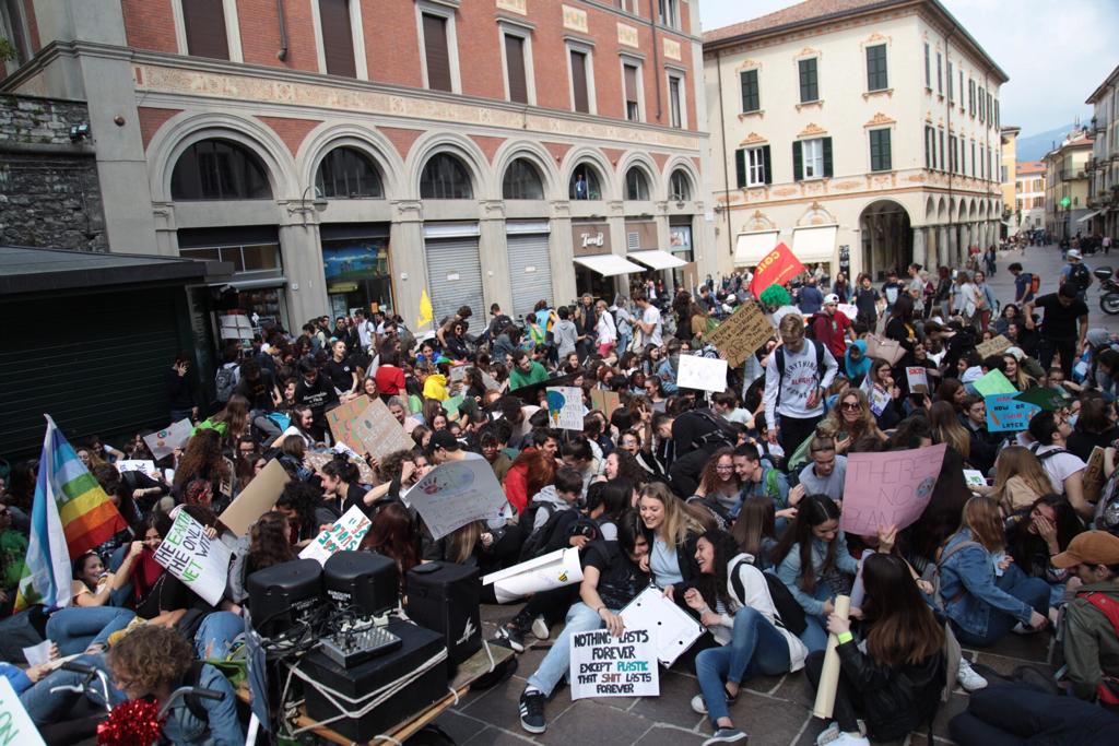 Davanti a Palazzo Cernezzi, dove da 18 settimane i giovani dei Fridays for Future tengono uno sciopero per il clima ogni venerdì. Qui è previsto un flashmob per le vittime del cambiamento climatico. I manifestanti si gettano a terra fingendo di essere morti: un’azione ispirata alle manifestazioni del gruppo ambientalista inglese Extinction Rebellion.