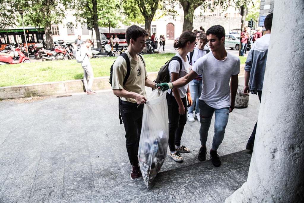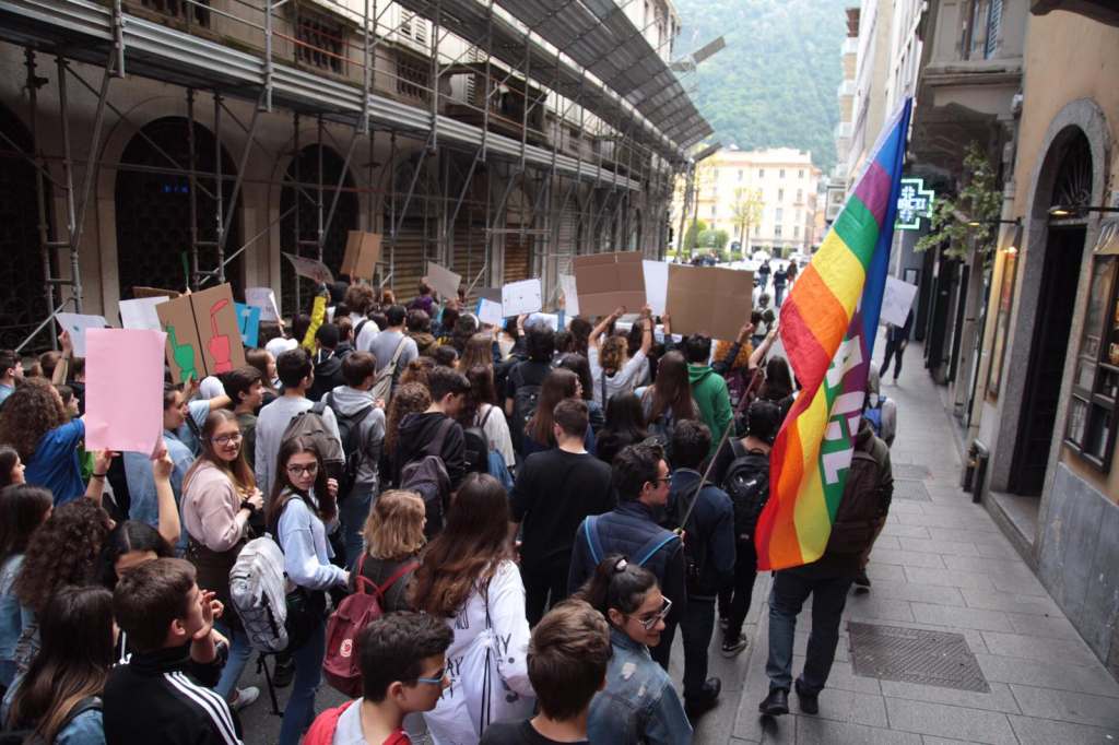 Secondo flashmob davanti al Liceo Classico Alessandro Volta, con invito agli studenti ad unirsi alla lotta per l’ambiente.