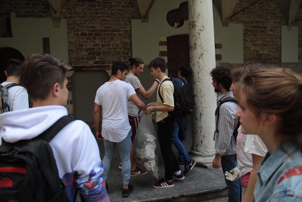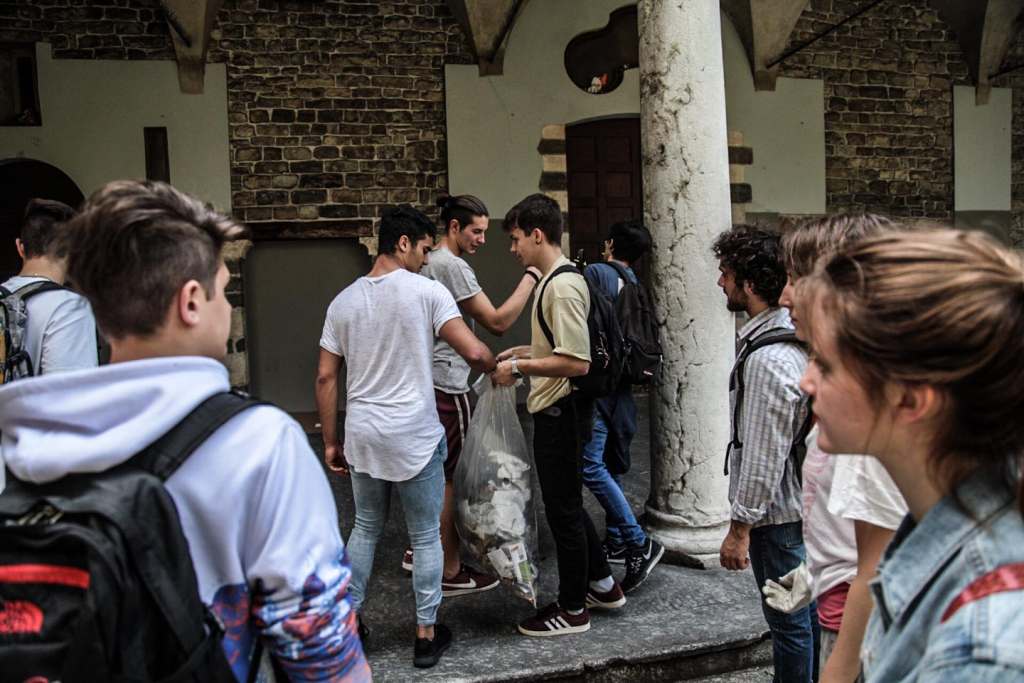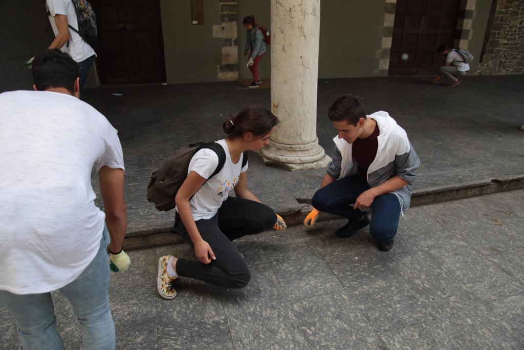 Nella parte finale del corteo, stop anche al portico di San Francesco per una breve pulizia.