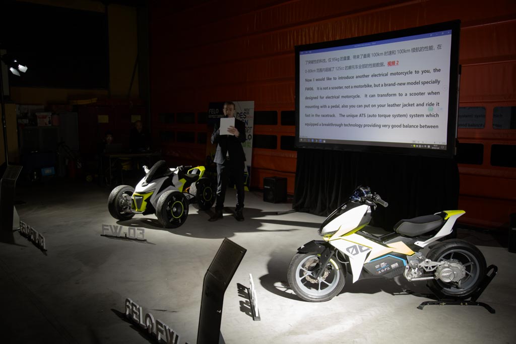 Durante la presentazione sono stati svelati i Felo Fw-03 e Fw-06, rispettivamente una moto elettrica modellata su esemplari da superbike e uno scooter da città.