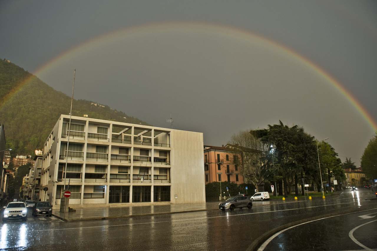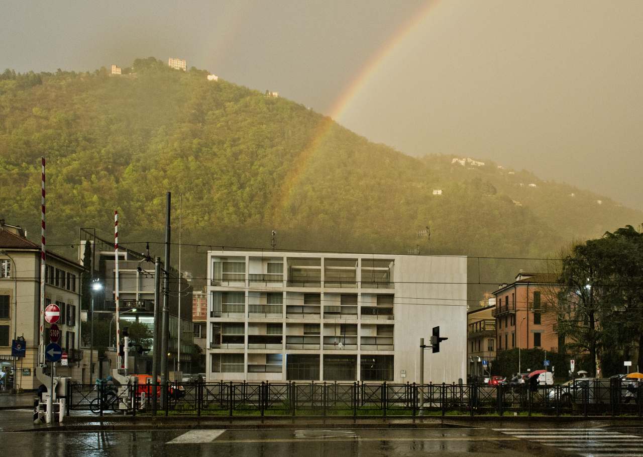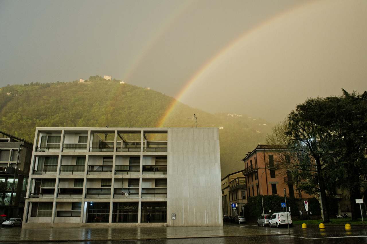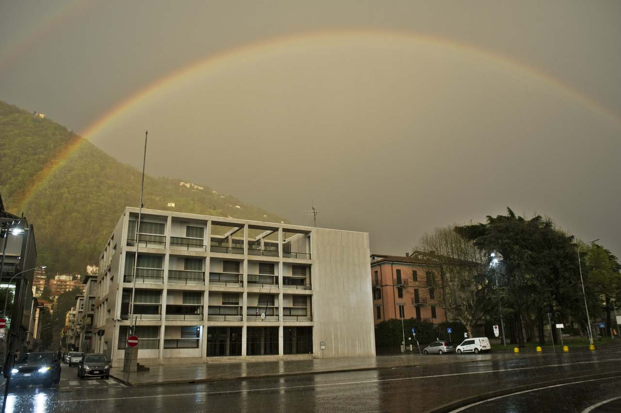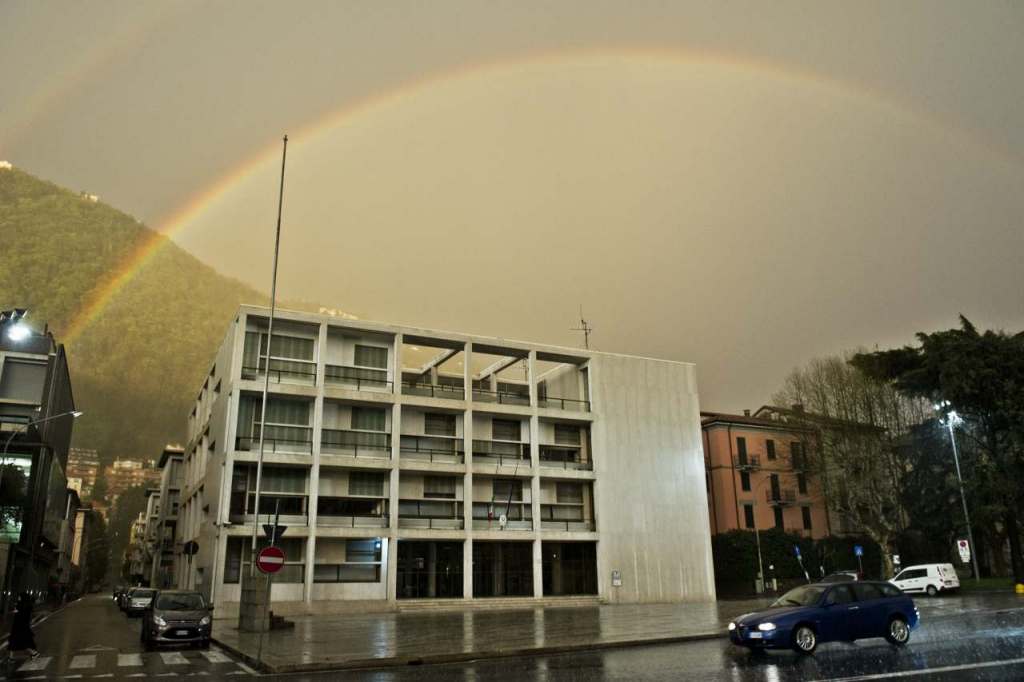 Un Trompe-l’œil di livello altissimo. Scatti magici quelli del nostro Carlo Pozzoni che oggi ha immortalato l’arcobaleno che letteralmente finisce sulla Casa del Fascio, gioiello razionalista comasco di Giuseppe Terragni.