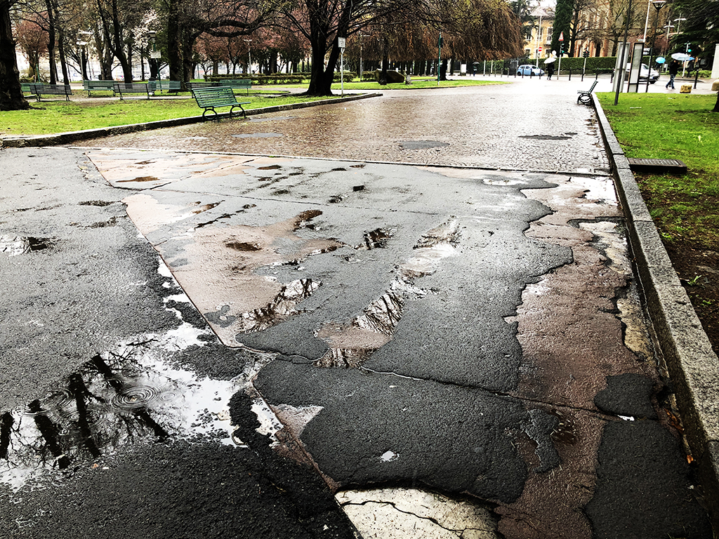 Anche se è già online il bando di concorso pubblico per la riqualificazione del luogo, ciò che lo caratterizza di più è una pavimentazione sconnessa e irregolare che rischia di essere alquanto pericolosa, specialmente nei giorni di maltempo.