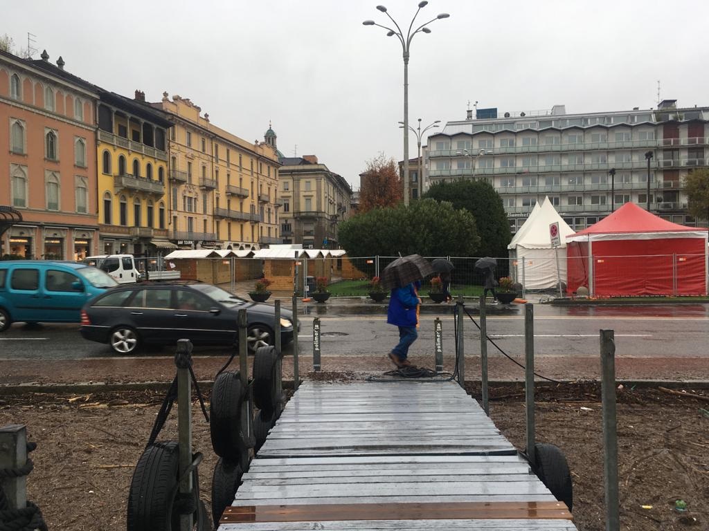 Su quel che resta del lungolago, in particolare proprio davanti al salotto buono dove peraltro sta prendendo forma la Città dei Balocchi, l’acqua nei punti più bassi già sommerge il marciapiede sebbene ancora di poco e senza impedire la camminata.