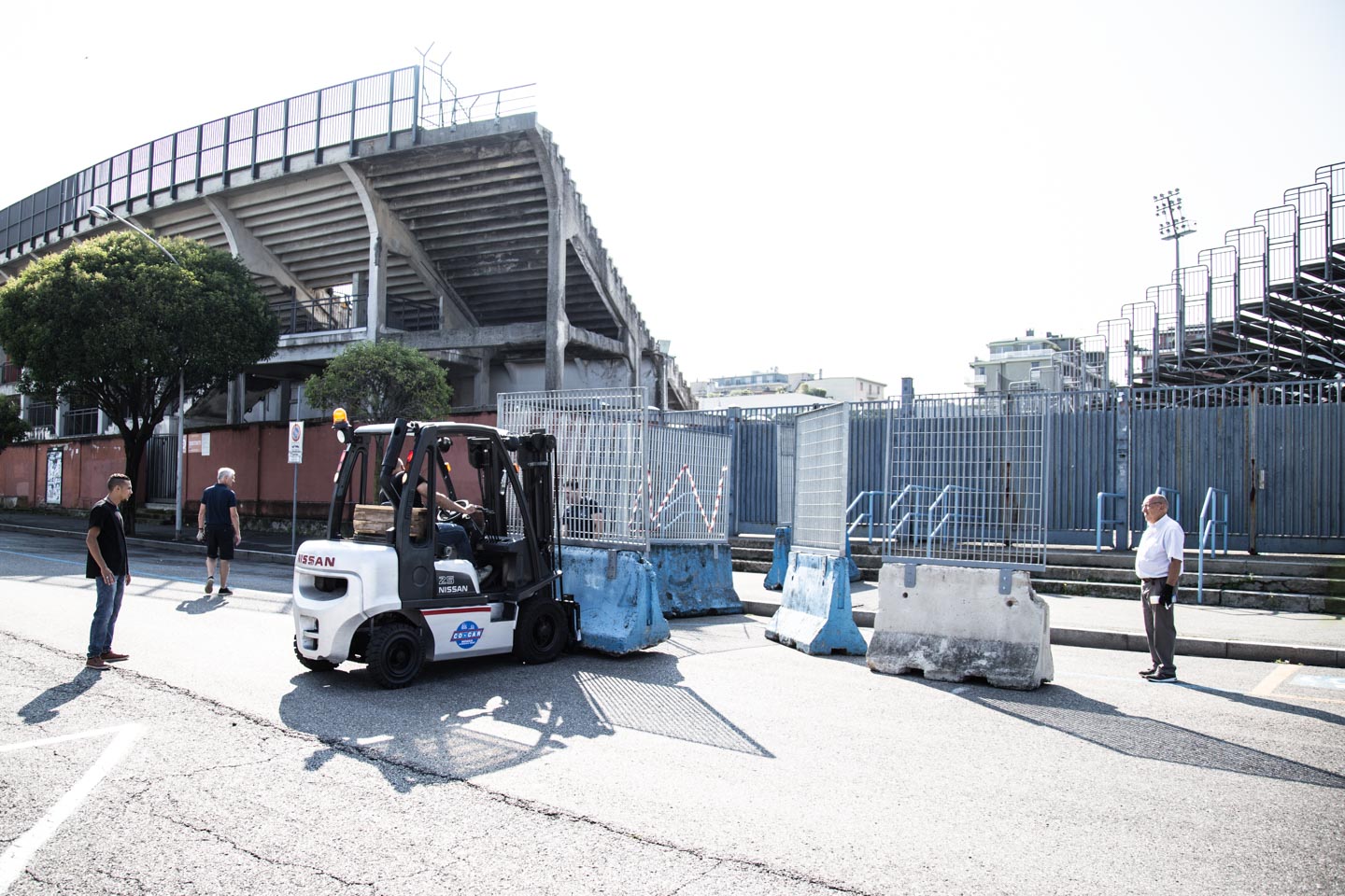 L’area attorno allo Stadio Sinigaglia è blindata, con divieti di sosta (pena rimozione forzata) nelle vie circostanti. Spartitraffico e reti sono stati posizionati per veicolare l’entrata dei tifosi, questo pomeriggio.