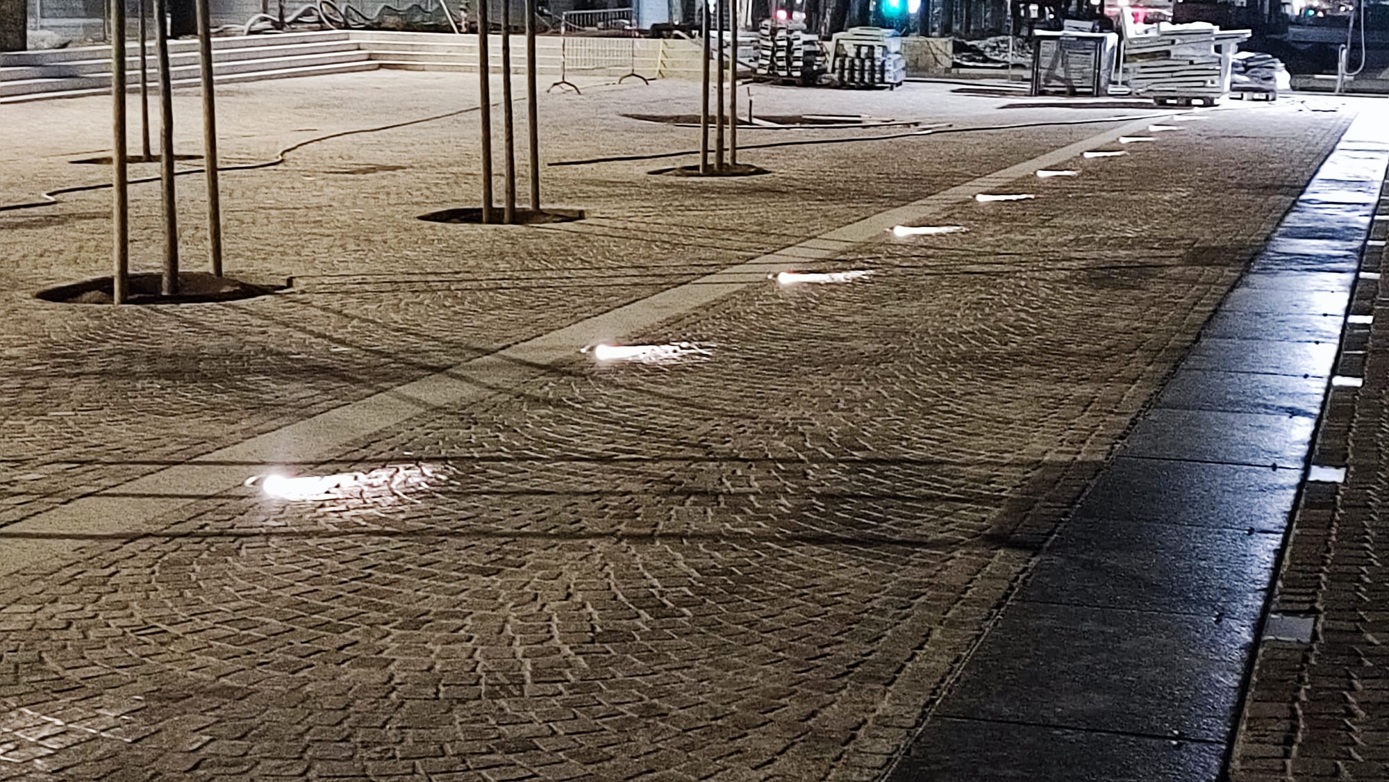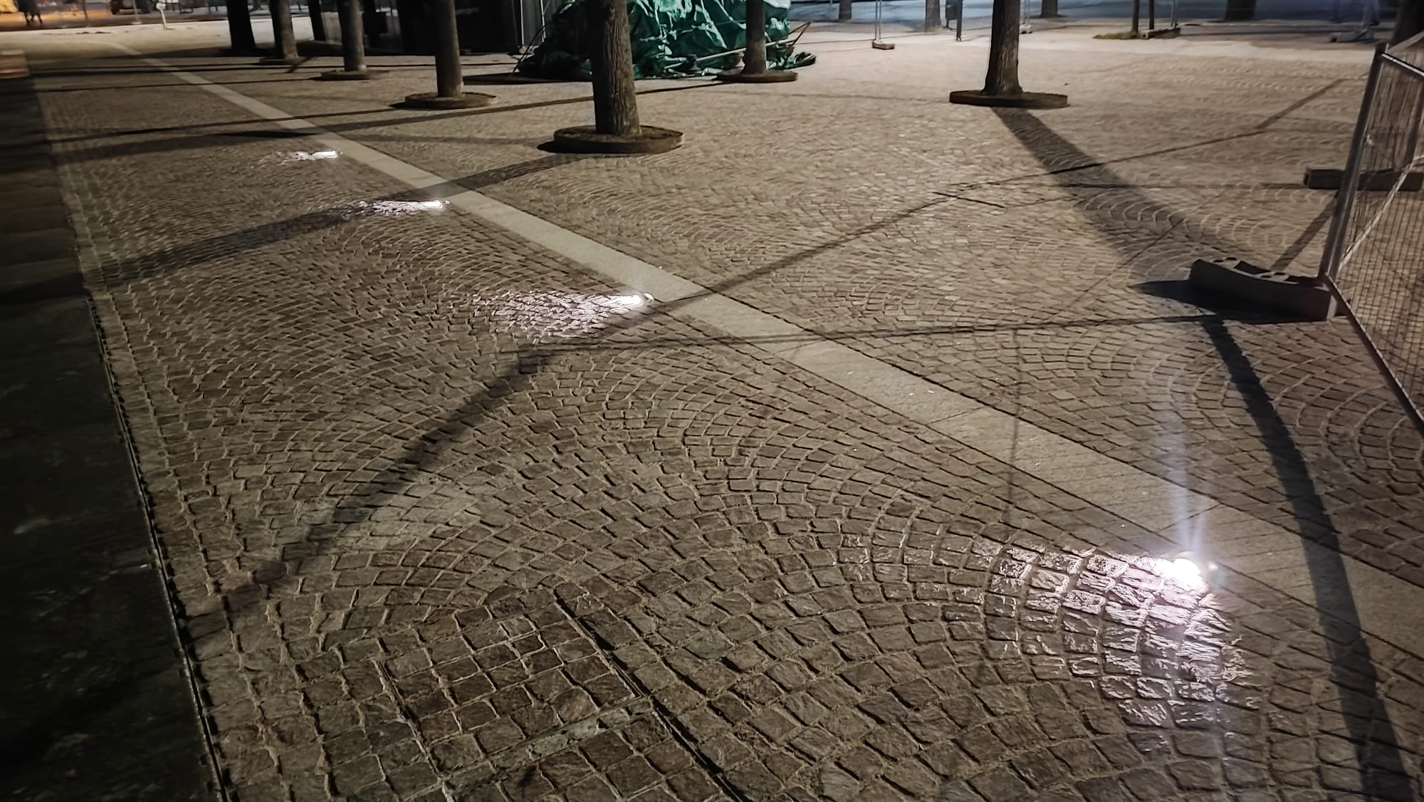 Vedi le strisce led sotto il monumento a Volta e i cubetti di porfido luminosi nell’omonima piazza.