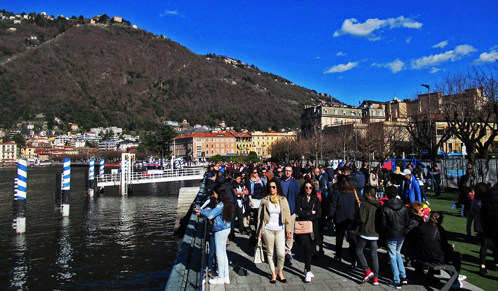 Il muro umano dei turisti in piazza Cavour. Ma anche il prato ai giardini a lago pieno di giovani (e meno giovani) intenti a godersi il sole, almeno un paio di immagini tra lago, battelli e diga foranea più vicine all’opera d’arte che alla fotografia, e molte altre istantanee di una Pasqua comasca 2018 che certamente resterà nella memoria di molti anche per i tantissimi aspetti piacevoli (al di là di alcuni disagi).