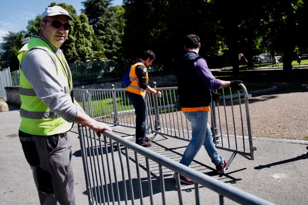 – i sistemi di recinzione mobili che inibiranno anche il passaggio pedonale in viale Puecher, via Sinigaglia, via Martinelli , Campo Garibaldi, Giardini Pubblici a lago;