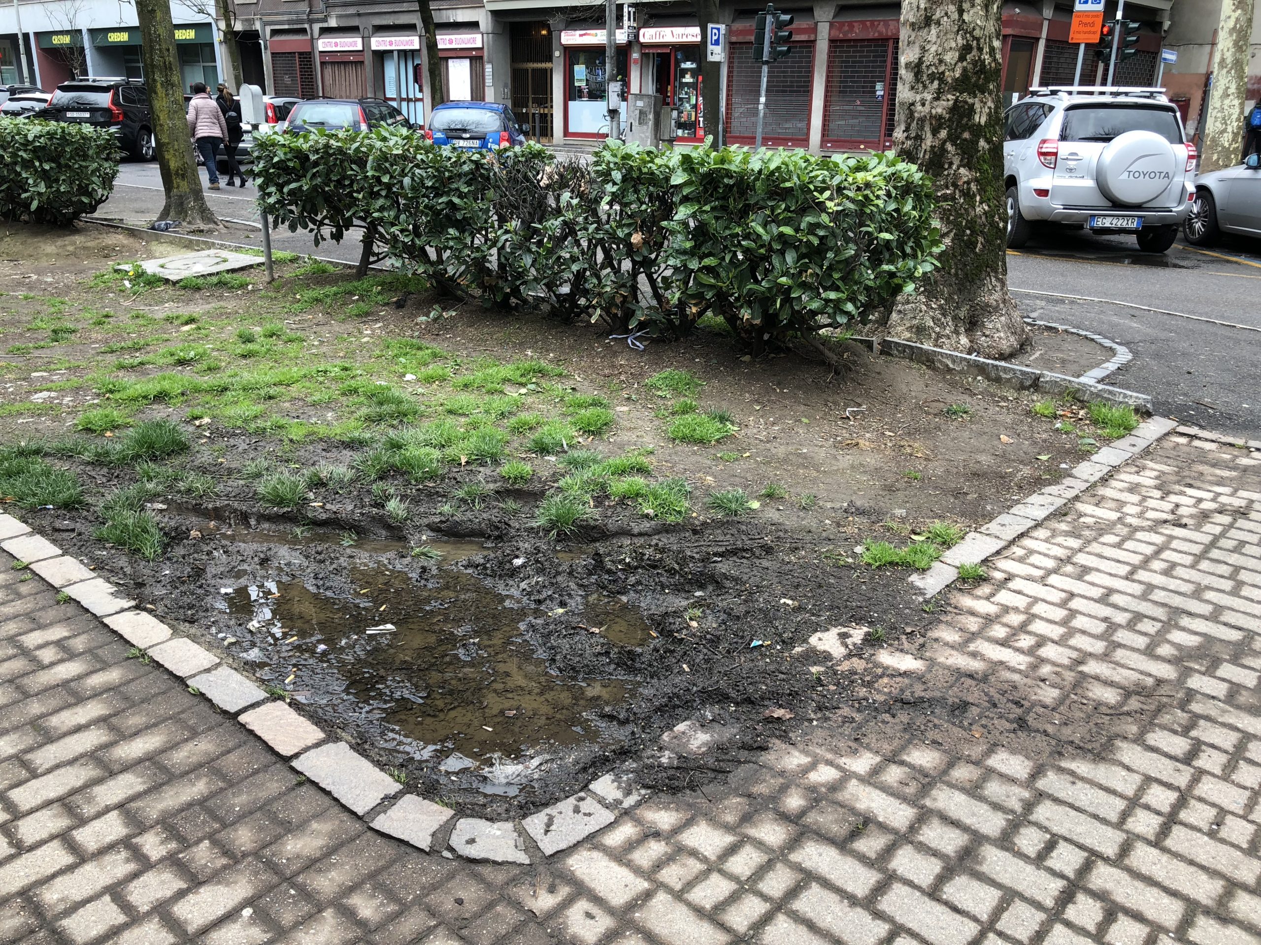 E proprio mentre parliamo con Laura, a conferma di quanto sta raccontando, una persona si apposta dietro a una siepe per scaricarsi.