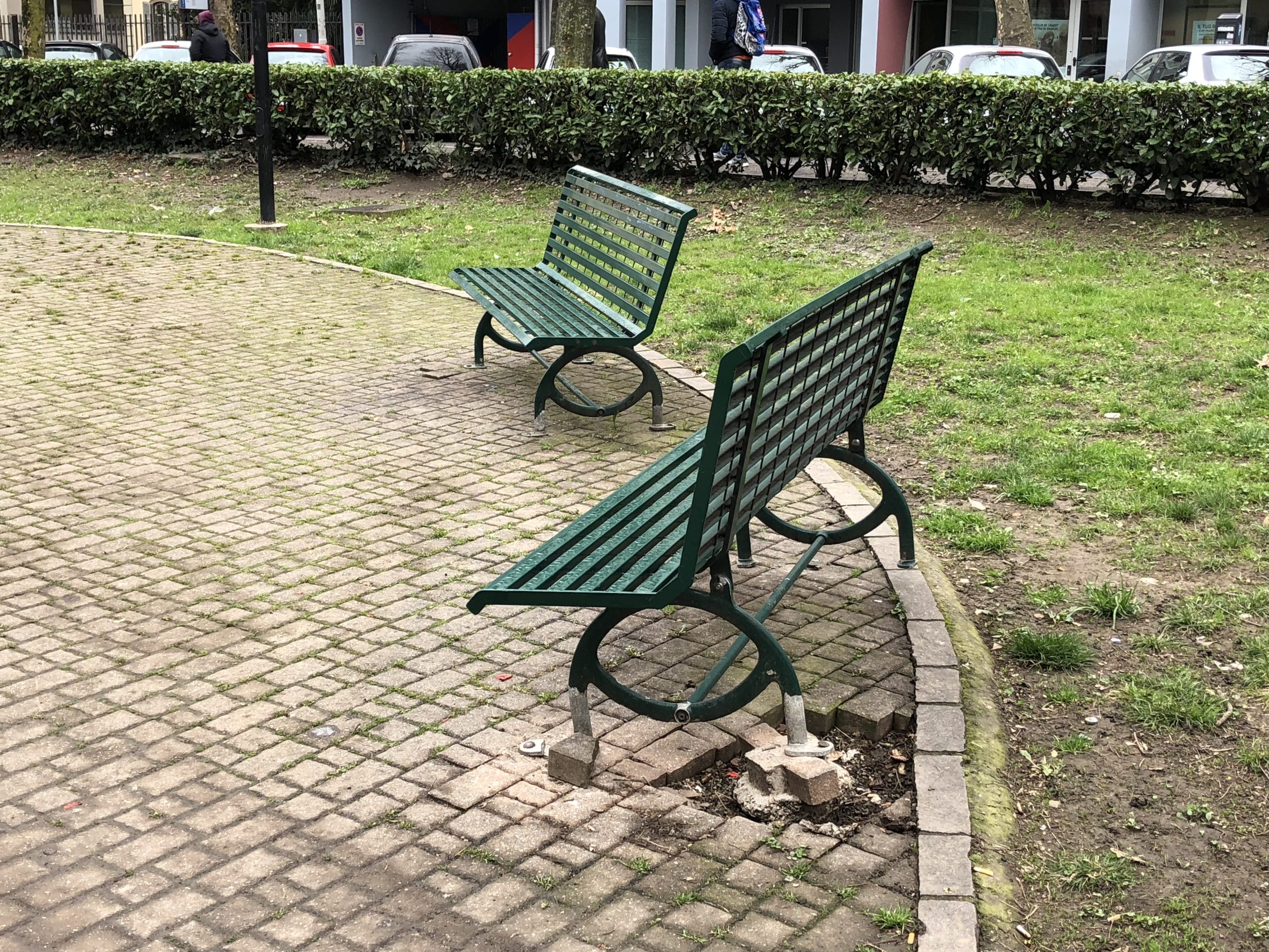 Per concludere, alcune delle panchine lungo il viale sono state prese di mira da veri devastatori: alcune sono state sradicate, altre divelte e lasciate così, in equilibrio precario, e in uno stato di incuria completa.