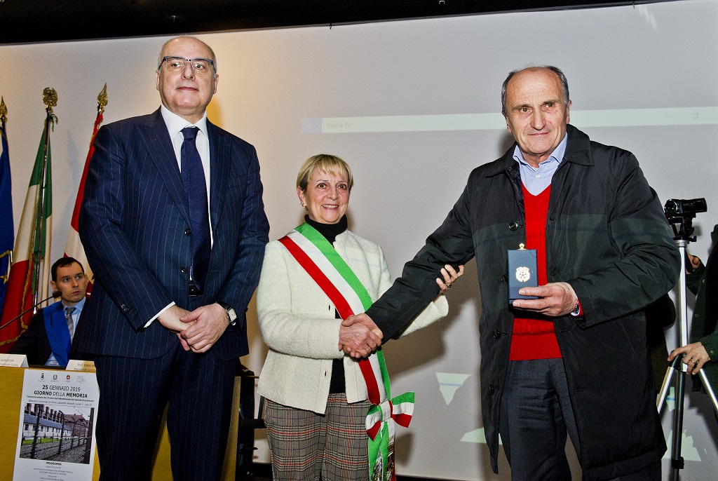 biblioteca comunale celebrazione della Giornata della Memoria, medaglia d’onore a Francesco Tozzi di Limido Comasco ritira il figlio Domenico ph: Carlo Pozzoni