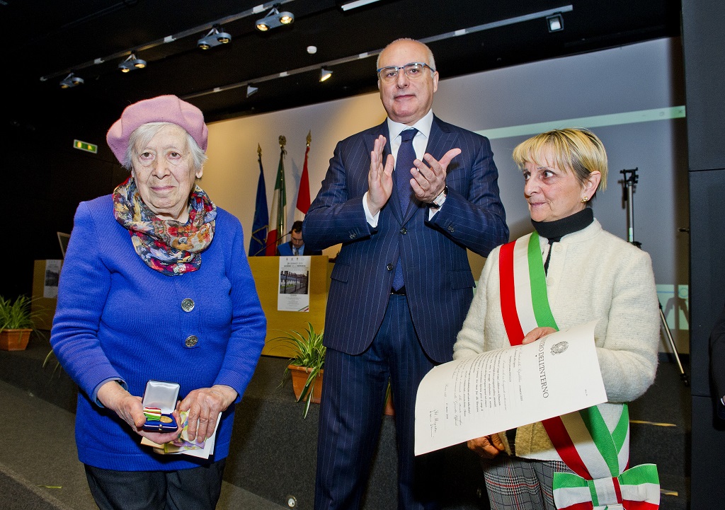 biblioteca comunale celebrazione della Giornata della Memoria, medaglia d’oro al merito civile alla memoria di Giuseppina Giovanna Panzica ritira la figlia Rosaria Luca ph: Carlo Pozzoni