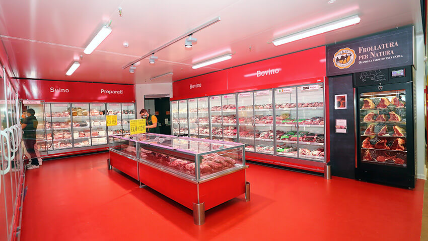 Macelleria: I banchi sono stati potenziati con l’introduzione di un’area specifica dedicata alla frollatura dry-aged, tecnica fondamentale per offrire tagli di carne di pregio.