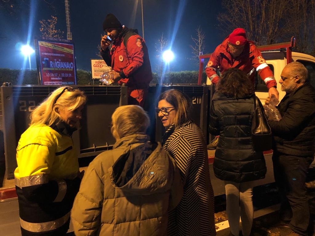 Le famiglie arrivate sul posto. Intanto circola un’informazione (per quanto non ufficiale) secondo cui in tre ore dovrebbe tornare l’acqua, forse anche il gas.