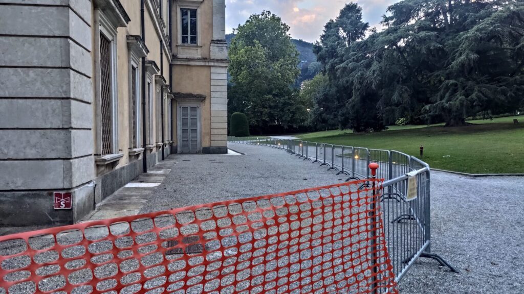Cinturone e vergogna. Il retro di Villa Olmo è sempre transennato. Anzi, peggio, la mega cancellata che cinge l’edificio nel corso del tempo si è allargata. Entro la fine dello scorso anno sarebbe dovuta partire la gara per il restauro, nulla di fatto. Non bastasse, il primo piano della villa di punta di Como è sempre blindato al pubblico tra affreschi ammuffiti, parquet a pezzi e degrado generale.