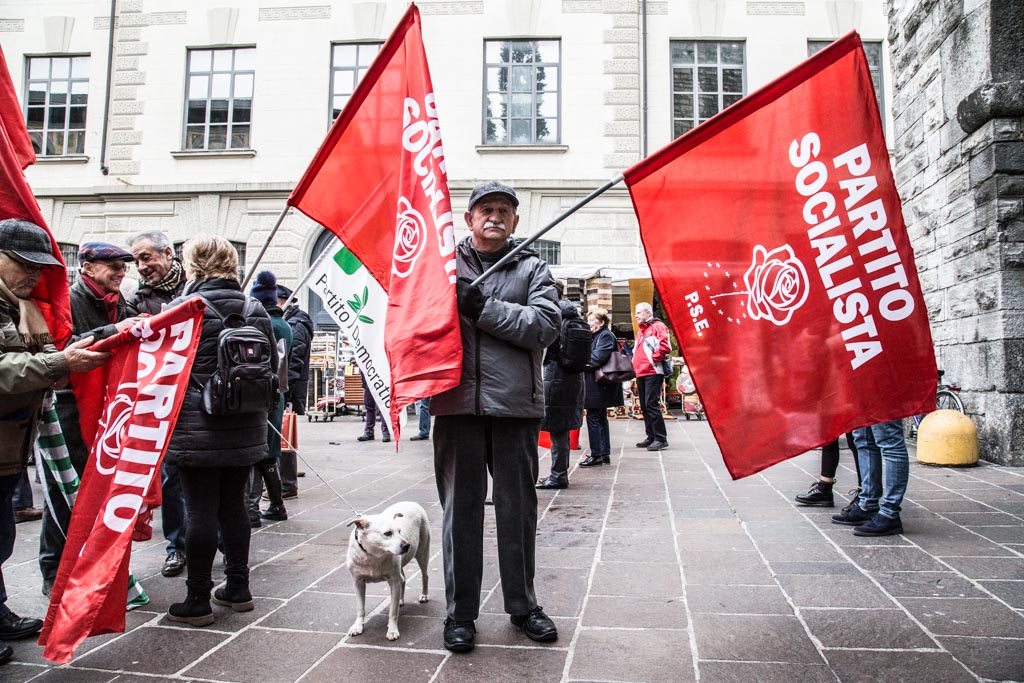 Poco più in là, Enrico Conti, anche lui socialista, regge una bandiera del partito. “Io sono qui per le pensioni e per i giovani, due cose che la manovra non tutela affatto – spiega l’uomo, ormai anziano, aggiungendo con nostalgia – quando a Como c’erano i socialisti le cose andavano meglio”.