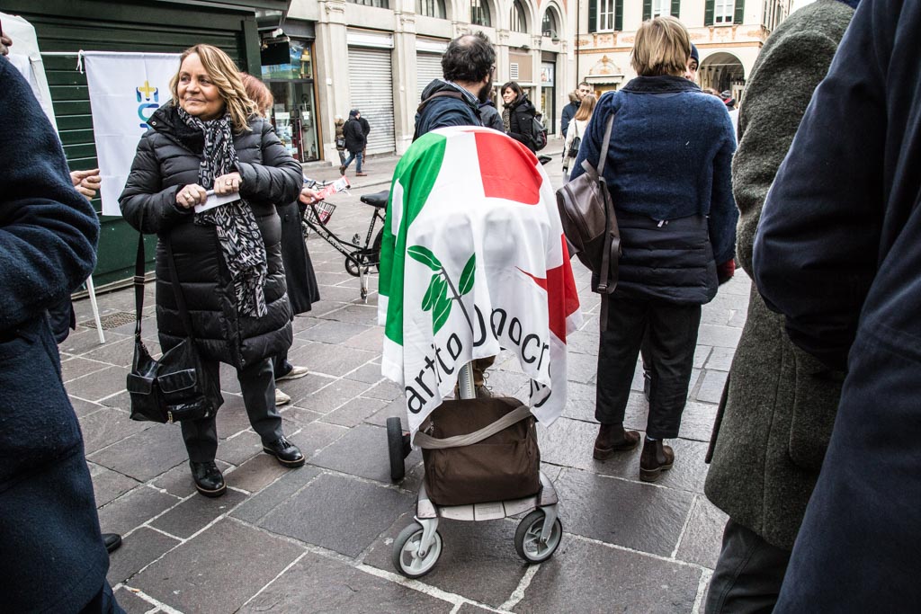 Un altro gazebo è stato montato in Largo Miglio, davanti a Porta Torre. Quasi ironicamente, una coalizione di forze di centro-sinistra, pertendo dal PD fino a esponenti locali di +Europa, passando per Svolta Civica e Socialisti Italiani, si è data appuntamento in un luogo intitolato al padre del pensiero federalista della Lega Nord.
