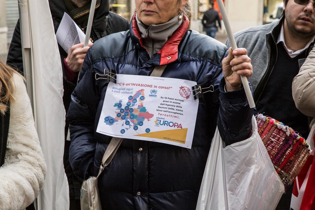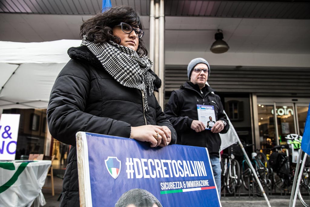 “Siamo qui per rivendicare la bontà e l’orgoglio del decreto sicurezza e immigrazione. Noi pensiamo alla sicurezza dei cittadini comaschi” spiega Molteni, che riserva un tono meno conciliante all’opposizione, rispetto a Locatelli, a Como e in tante altre piazze italiane, confermando che la campagna elettorale no, non finisce mai: “Noi lavoriamo perché Como e i comaschi siano più sicuri. Gli altri chiedono più diritti per i migranti e difendono le ONG”.