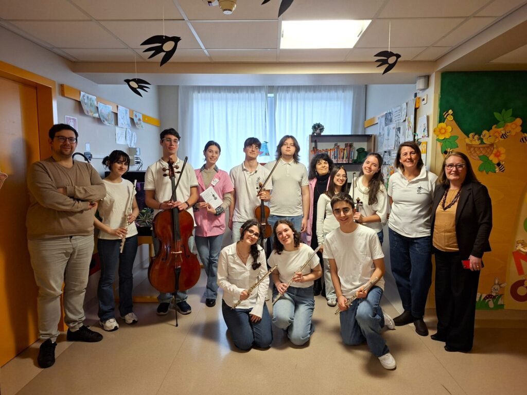“Musica in corsia”, il progetto dell’Ufficio Scolastico Regionale per la Lombardia e della Fondazione Antonio Carlo Monzino che propone lezioni-concerti per le sezioni delle scuole in ospedale, con la collaborazione dei Licei Musicali e delle Orchestre Regionali della Lombardia, è approdato questo pomeriggio all’ospedale Sant’Anna. Il primo concerto si è tenuto lo scorso 25 febbraio all’ospedale Sant’Antonio Abate a Cantù, nel reparto di Pediatria, quest’oggi, appunto, è seguito il secondo appuntamento all’ospedale Sant’Anna, a San Fermo della Battaglia, nel reparto di Pediatria. Entrambi i due reparti sono sedi di sezioni di Scuola in ospedale. Quella dell’anno scolastico 2025-2026 è la terza edizione della rassegna dedicata ai giovani e giovanissimi pazienti ricoverati negli ospedali lombardi e agli operatori sanitari che quotidianamente prestano servizio nei luoghi di cura.