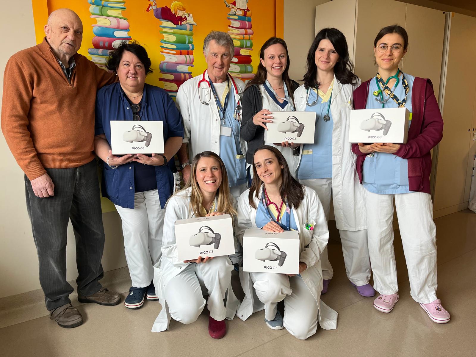 I dispositivi, modello Pico G3, rappresentano una potente forma di distrazione cognitiva e offrono un’esperienza immersiva che isola dal contesto reale, contribuendo a ridurre ansia e stress nei bambini, ma anche nei genitori e negli operatori sanitari, facilitando così lo svolgimento delle procedure mediche.