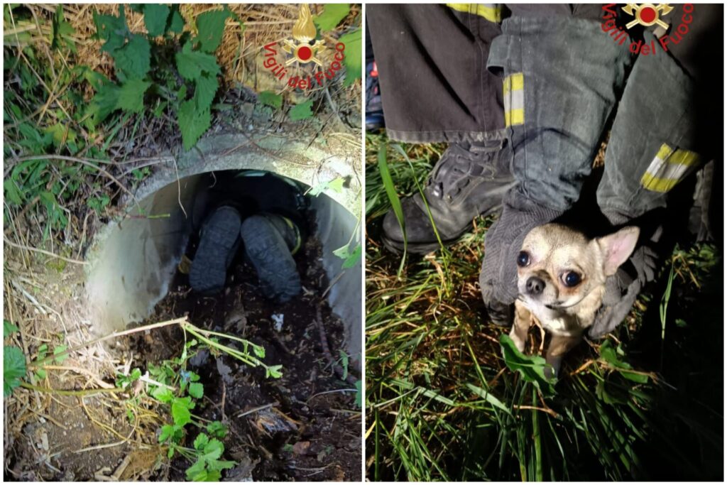I vigili del fuoco dal distaccamento di Canzo sono giunti sul posto e dopo diversi tentativi hanno individuato e recuperato l’animale all’interno di una tubazione di scolo delle acque chiare.