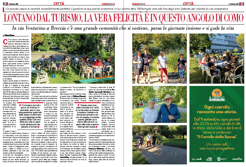 Vera e propria anima e memoria storica di questo luogo, è Giuliano Romanò, 87 anni portati con l’energia e lo spirito di un giovanotto, che ricorda: “Queste case sono state costruite con i soldi di noi lavoratori e, durante il cantiere, il sabato e la domenica venivamo qui con le vanghe a costruire questo giardino – racconta – ce lo siamo fatto da soli, un pezzo alla volta, e quando siamo venuti ad abitare qui eravamo tutte giovani coppie, qui sono cresciuti i nostri figli e ora che siamo nonni ci giocano i nostri nipoti e trascorriamo il tempo tutti insieme. E siamo davvero una perla rara di integrazione, non solo tra persone di età diverse, ma anche tra italiani e persone straniere riuscendo a creare un’omogeneità che dovrebbe esserci ovunque e che, invece, spesso manca”.