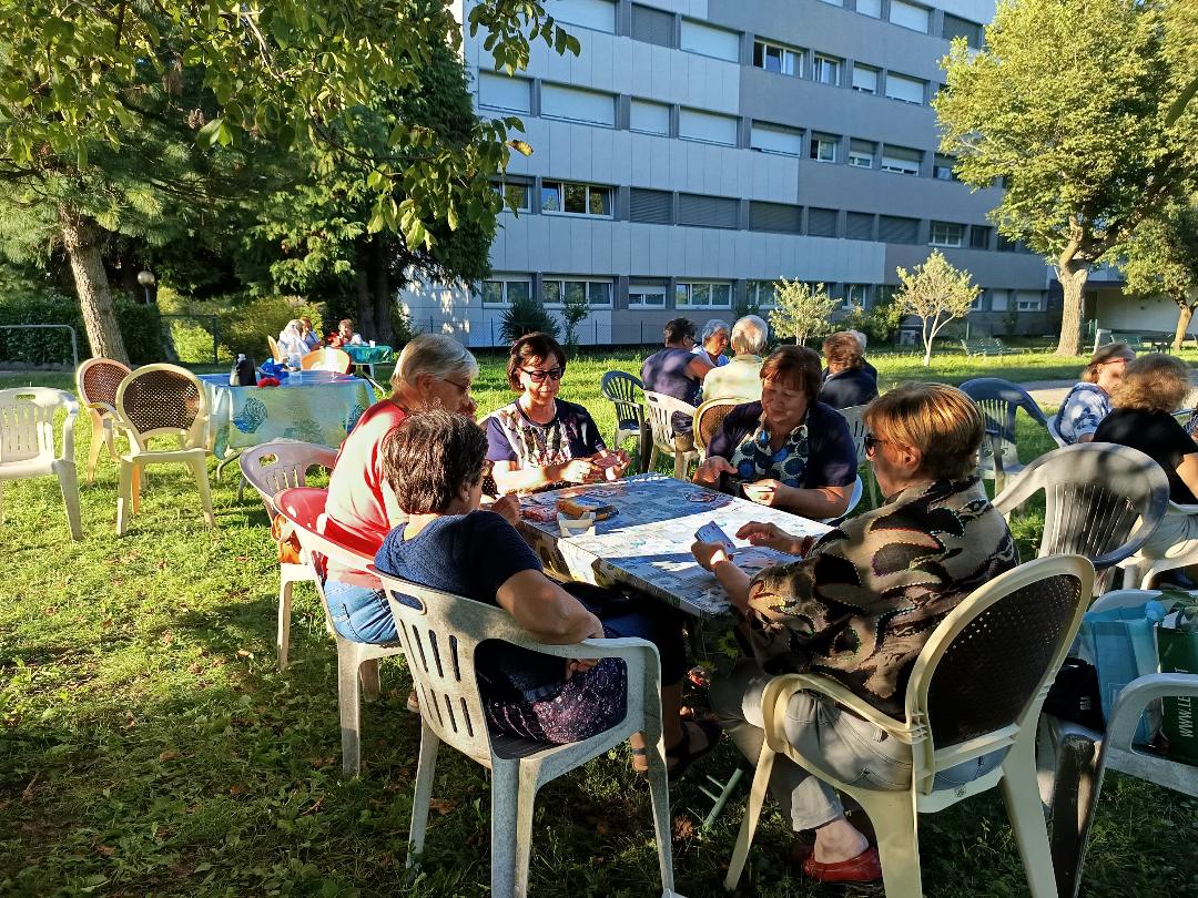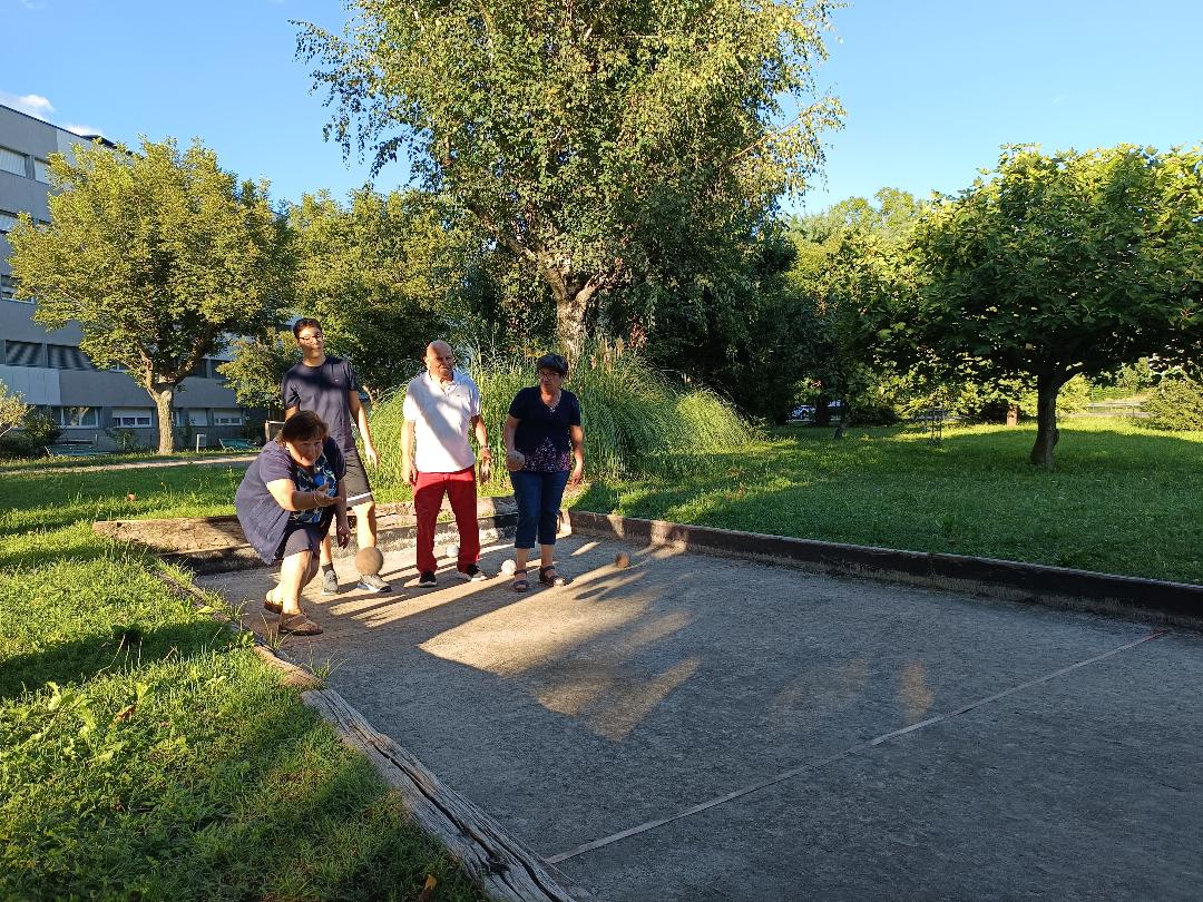 “Ci troviamo qui tutti i giorni, se il tempo lo permette, siamo circa una quarantina, quasi tutti dello stesso condominio a cui si aggiunge anche qualche amico che non abita qui, oltre ai nipoti ormai adolescenti che passano a trovarci e a trascorrere le giornate estive insieme ai loro amici – raccontano gli abitanti di questo angolo di paradiso seduti ai tavolini a chiacchierare e a giocare a carte o intenti a sfidarsi tra nonni e nipoti a bocce – il più anziano di noi ha 87 anni e il più giovane nascerà a dicembre e siamo come una grande famiglia: ci facciamo compagnia, ci diamo una mano a vicenda in caso di necessità, festeggiamo insieme i compleanni e la sera capita spesso che si improvvisi una cena. C’è chi sale in casa a prendere una bottiglia, chi una focaccia, una torta…facciamo spaghettate, grigliate, ordiniamo le pizze e prima del Covid organizzavamo anche delle gite, noleggiavamo un pullman e andavamo in gita e a pranzare fuori. Poi con la pandemia abbiamo smesso, ma dovremmo riprendere”.