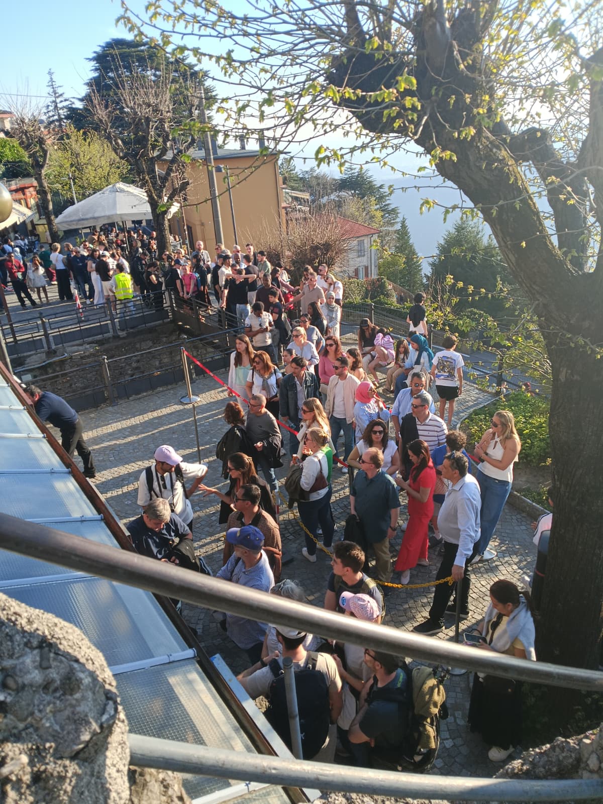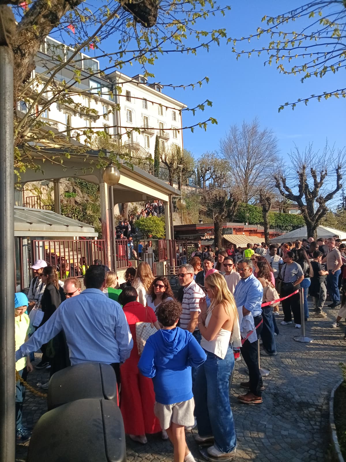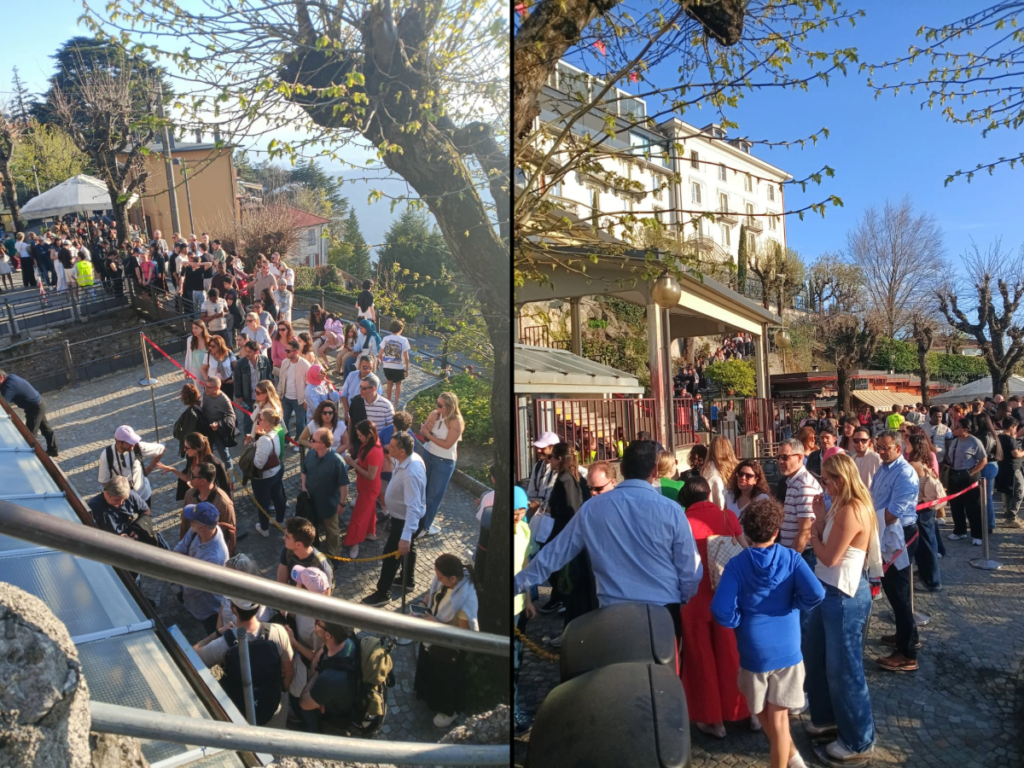 Ha riaperto i battenti solo ieri, venerdì 3 aprile, dopo tre mesi di lavori ed è già presa d’assalto. Parliamo della Funicolare Como-Brunate di cui, solitamente, vengono mostrate le code nella stazione a salire in piazza De Gasperi a Como. Ebbene oggi il lettore invia video e immagini della colonnona di turisti in attesa di poter scendere. Evidentemente per questioni logistiche l’ingresso è stato spostato rispetto al passato nella ‘piazzetta’ sottostante l’impianto con tanto di catenelle di contenimento per il serpentone (per scendere solitamente si entra dall’ingresso superiore di fianco al bar Serafino).