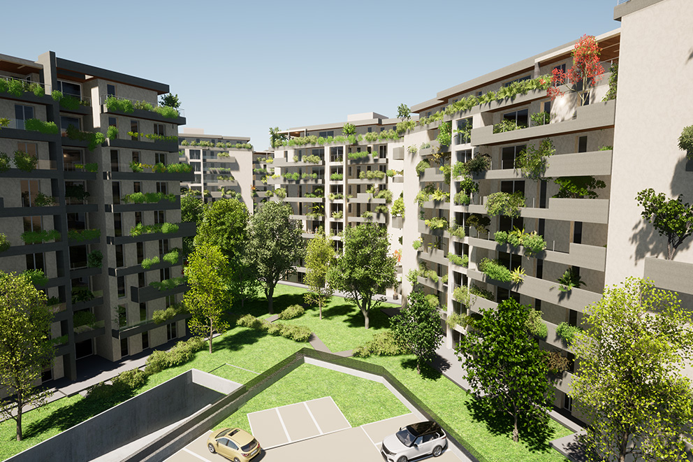L’intervento non si limita alla costruzione di nuovi edifici, ma punta a creare un vero e proprio quartiere sostenibile. Il progetto prevede la realizzazione di circa 400 abitazioni, con residenze certificate in classe energetica A4 ed edilizia convenzionata. Un’attenzione particolare è stata rivolta all’ambiente: oltre il 60% della superficie totale sarà infatti destinata a spazi pubblici, aree verdi e servizi per la comunità.