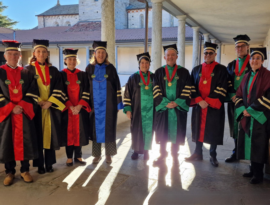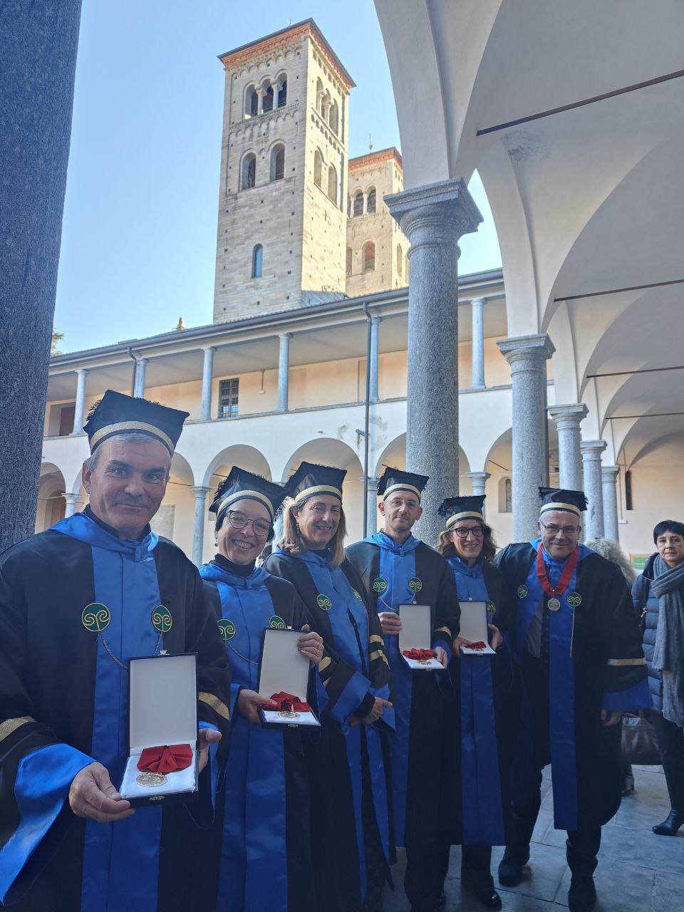 La Rosa Commacina, massima onorificenza dell’Università dell’Insubria ispirata a un fregio marmoreo della cattedrale di Como, è stata conferita a due associazioni: il Banco di Solidarietà di Como, rappresentato dalla presidente Sonia Bianchi, e la Piccola Casa Federico Ozanam con il presidente Enrico Fossati. Un momento importante della cerimonia è stato dedicato alla consegna delle medaglie di Ateneo ai 42 professori e professoresse divenuti ordinari negli ultimi tre anni. Presenti in toga: Massimo Agosti, Paolo Bellini, Giuliano Benenti, Roberta Bettinetti, Paola Biavaschi, Carlo Santo Brambilla, Gianluigi Broggini, Nicoletta Cannone, Barbara Carminati, Daniele Cassani, Antonio Di Guardo, Paolo Di Trapani , Marco Donatelli, Giulio Facchetti, Mauro Fasano, Gianmarco Gaspari, Patrizia Gazzola, Brunella Gerla, Giorgio Grasso, Francesco Grossi, Davide Locatelli, Silvia Marino, Adriano Martinoli, Elisa Mastrogiacomo, Giampiero Merati, Gianluca Molla, Alessandro Motto, Alberto Onetti, Chiara Perini, Giuseppe Porro, Tiziana Rubino, Sabrina Sicari, Genciana Terova, Gianluca Tettamanti, Vincenzo Torretta e Massimo Venturini.