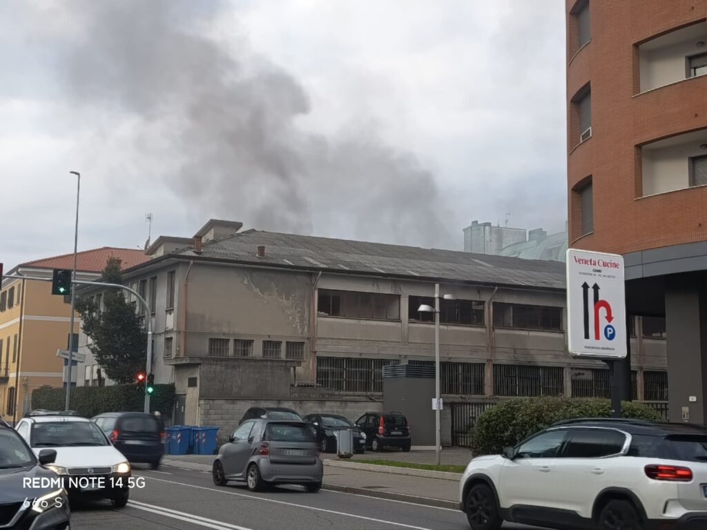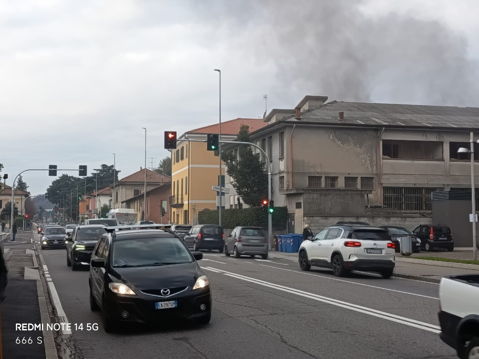 Incendio a Como questa mattina. A Camerlata, dalle 9 circa, un fumo denso e nero visibile a distanza è salito da un capannone alla destra della corsia in direzione uscita dalla città.
