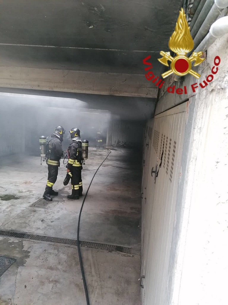 Intervento d’urgenza dei vigili del fuoco, questa mattina poco prima delle 8.30, a Cagno, in vicolo Lucino. Un incendio ha avvolto un’auto all’interno di un box sottostante una palazzina di due piani.