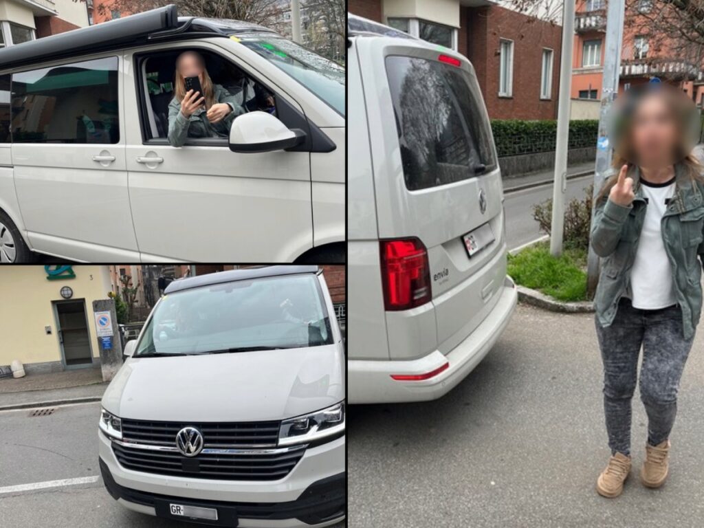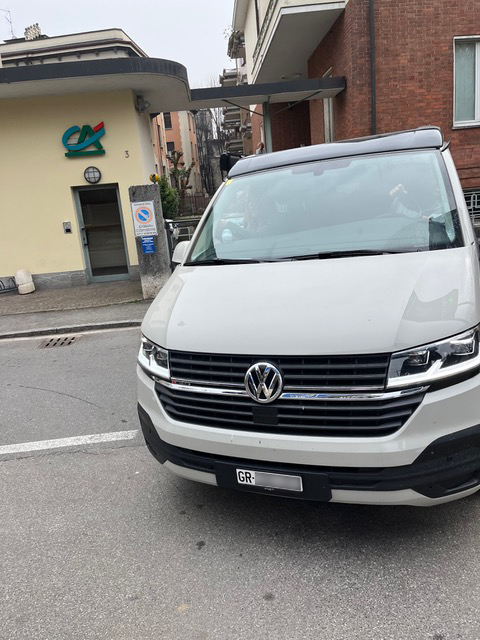 Un furgone guidato da una coppia di turisti (un van, vediamo dalle foto, svizzero, in particolare del Canton Grigioni, Ndr) arriva a velocità sostenuta da Via Fratelli Recchi-Via Sant’Elia e non svolta a destra in via Bossi, ma prosegue in via Sant’Elia per accedere al parcheggio sotterraneo verso viale Cavallotti CONTROMANO. Il furgone ci fa il pelo. Strillo che è contromano e il signore alla guida mi risponde che non “è mica scemo, capisce l’italiano”. Replico che, guidando contromano, ha quasi lasciato mio figlio orfano di entrambi i genitori.
