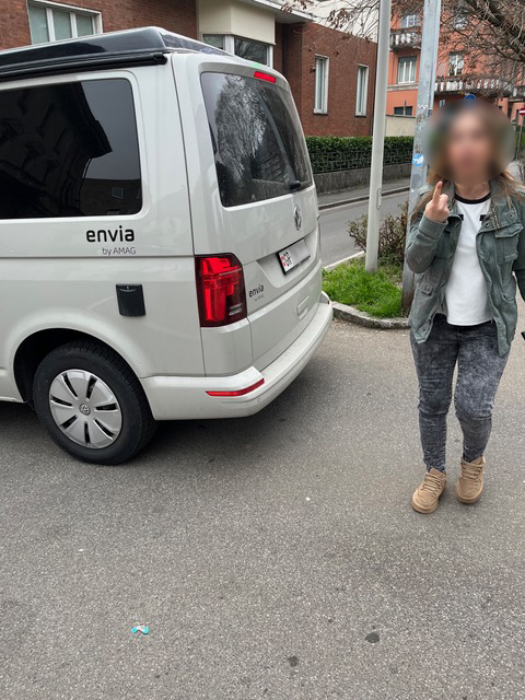 Riassumo quello che è successo dopo: non solo i turisti (confinanti) non hanno chiesto scusa (per aver cercato di accorciare le nostre esistenze entrando contromano a velocità eccessiva), ma hanno anche iniziato a insultarci.