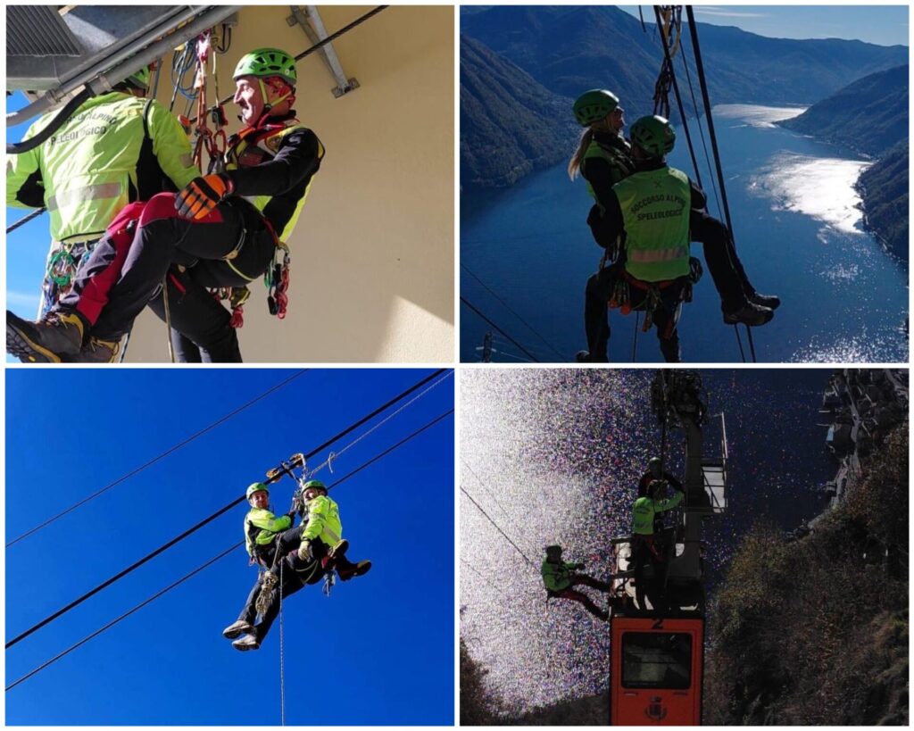 Coinvolti una ventina di tecnici, assistiti da due istruttori regionali del CNSAS, con simulazione del fermo della funivia Pigra–Argegno e l’ipotetico blocco dell’impianto. Previste l’assistenza ai passeggeri, l’accesso alla struttura con calata in linea, la messa in sicurezza con il triangolo di evacuazione “imbrago” per poi calarli a terra.