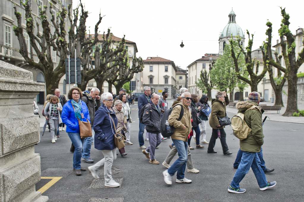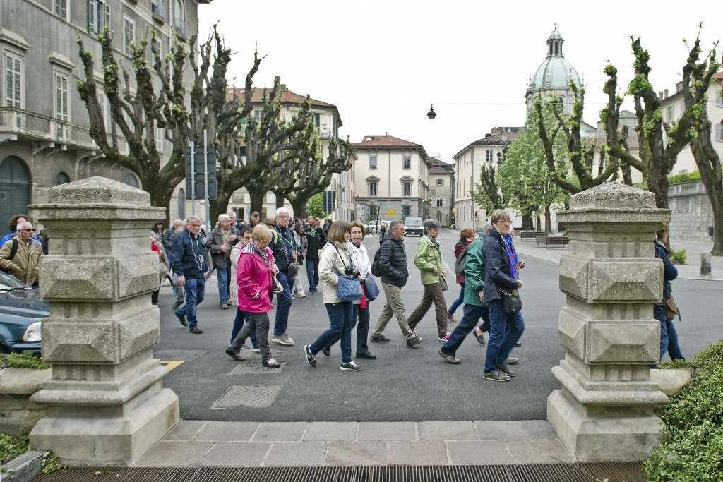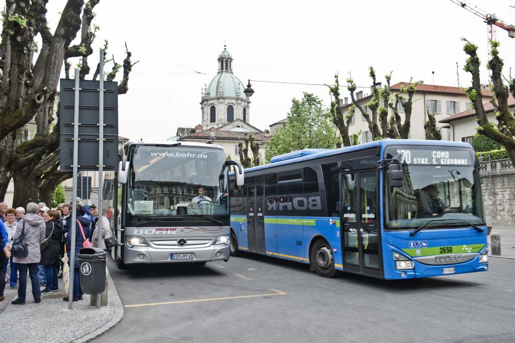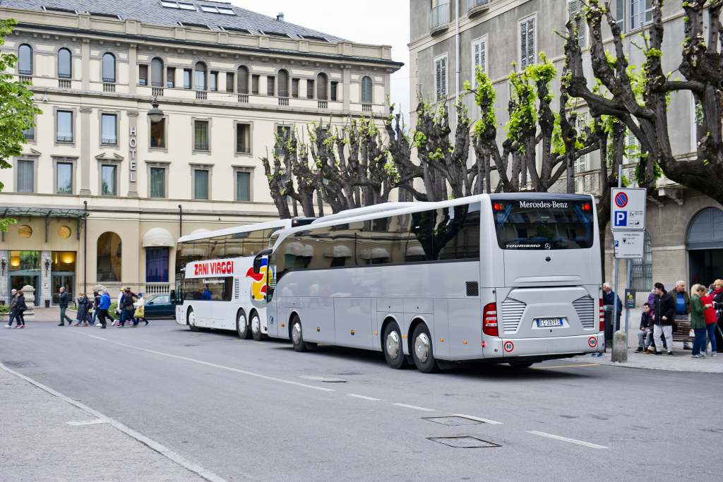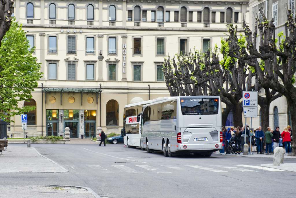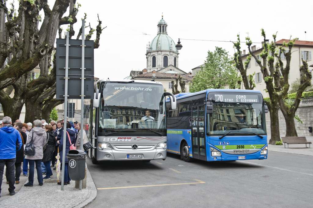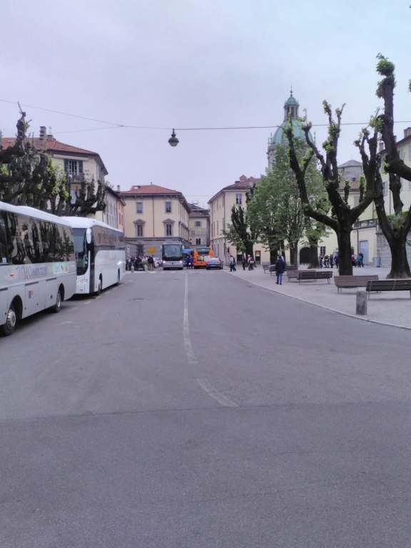 I pullman turistici che sostano in piazza Roma non sono un problema per tutti. Per qualcuno infatti sono una vera e propria boccata d’aria fresca in un angolo di Como in cui il passaggio pedonale latita.