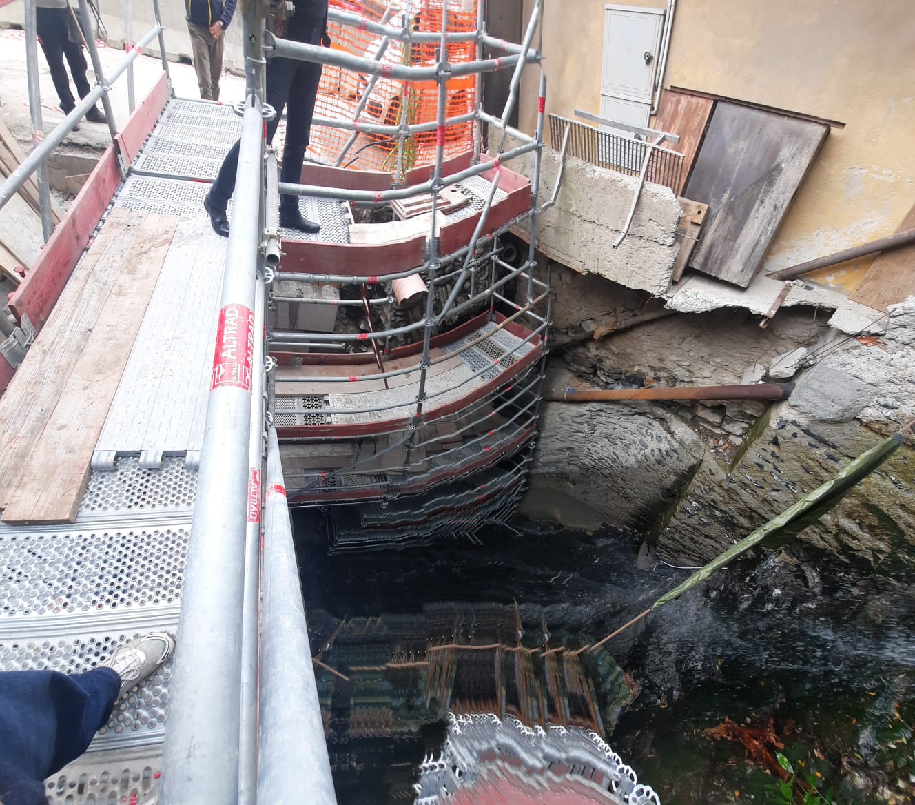 È stata completata la parte strutturale di rinforzo del terrapieno e montato il ponteggio necessario alla ricostruzione della porzione di volta crollata. I lavori stanno procedendo speditamente e, salvo imprevisti o maltempo, entro la fine della settimana il ponte sarà riaperto al traffico in doppio senso di marcia. - Ponte Uno (su cui è stato montato il ponte bailey):