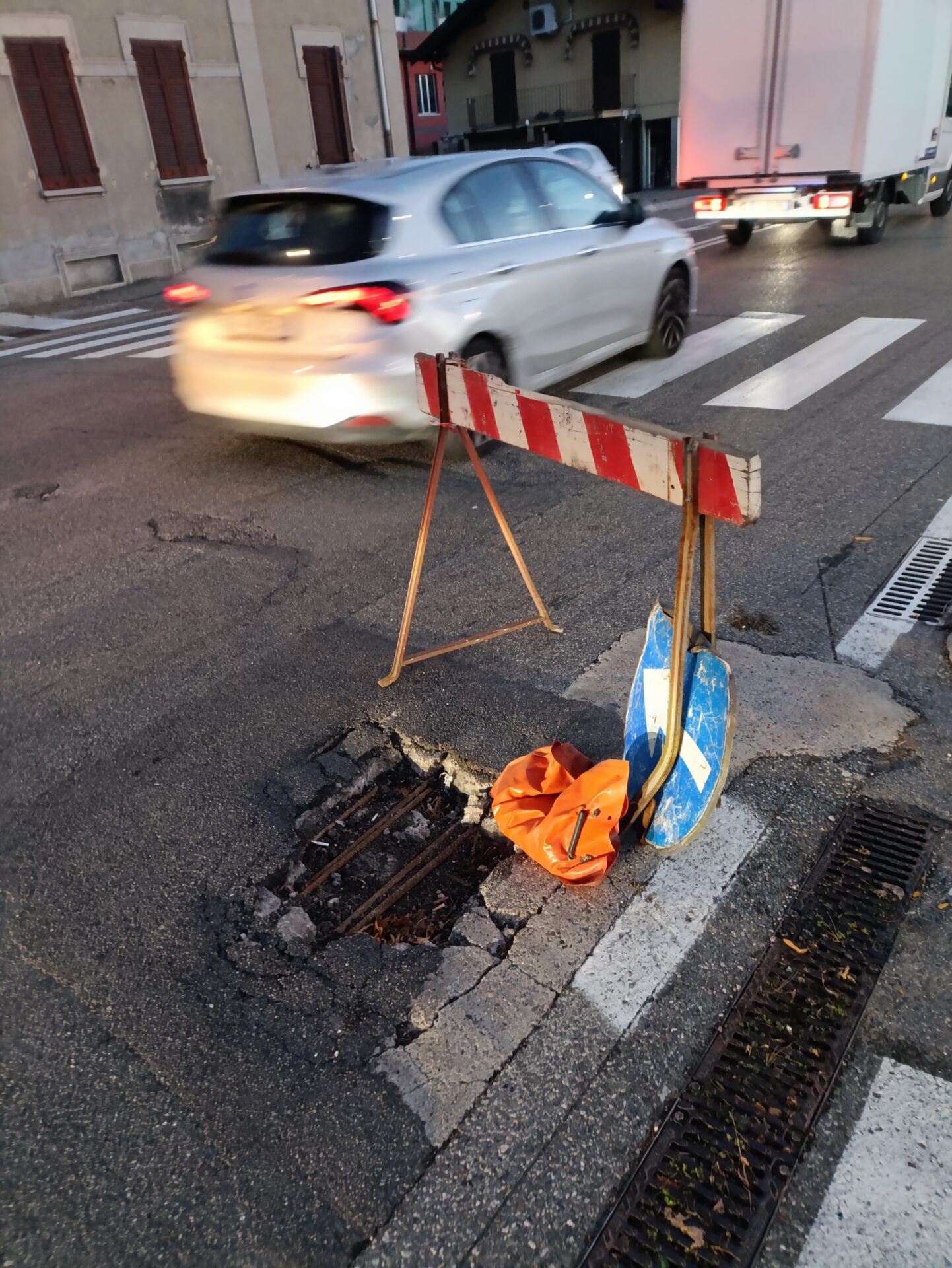 Una buca decisamente profonda si è aperta su una delle strade più trafficate in ingresso e in uscita da Como. Siamo in via Pasquale Paoli, direzione Camerlata, e come si vede dalle immagini inviate alla redazione da un nostro lettore (la mail per lettere e foto è redazionecomozero@gmail.com) la voragine da giorni crea anche rallentamenti al traffico, in una zona già spesso congestionata.