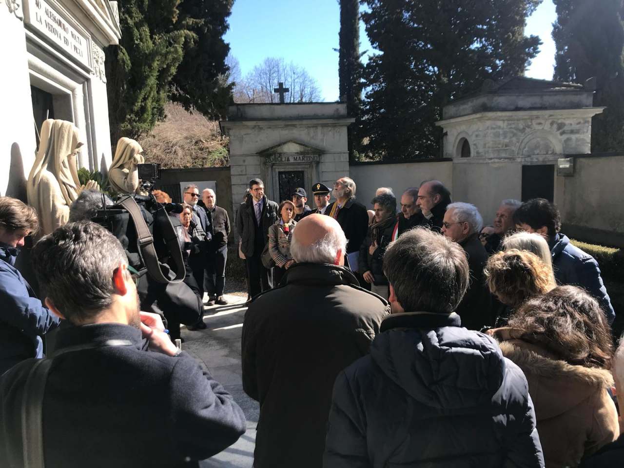 Tanti i concittadini presenti, desiderosi di rendere omaggio al celebre comasco.