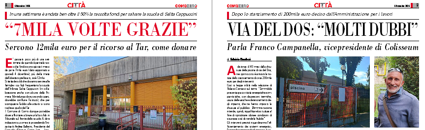 E poi ancora due casi cittadini: l’ennesimo ricorso contro la chiusura delle scuole e i dubbi da via del Dos sui finanziamenti decisi dal Comune.