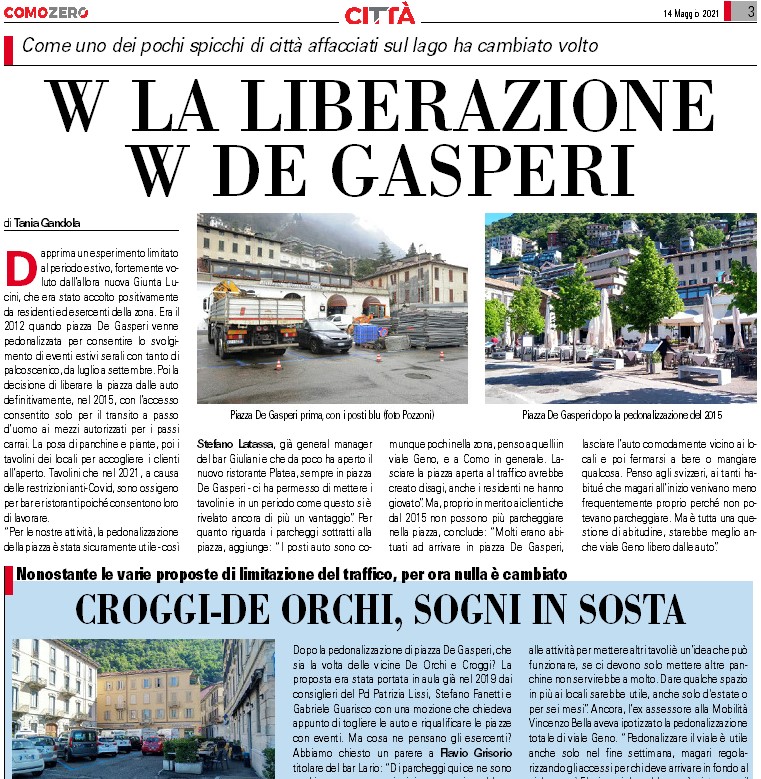 Numero quasi monografico. A quattro anni dalla fine dell’amministrazione Lucini abbiamo voluto tornare sul grande progetto di pedonalizzazione, cioè allargamento della Ztl, firmato dall’allora assessore ai Lavori Pubblici, Daniela Gerosa, in tandem con il collega all’Urbanistica, Lorenzo Spallino.