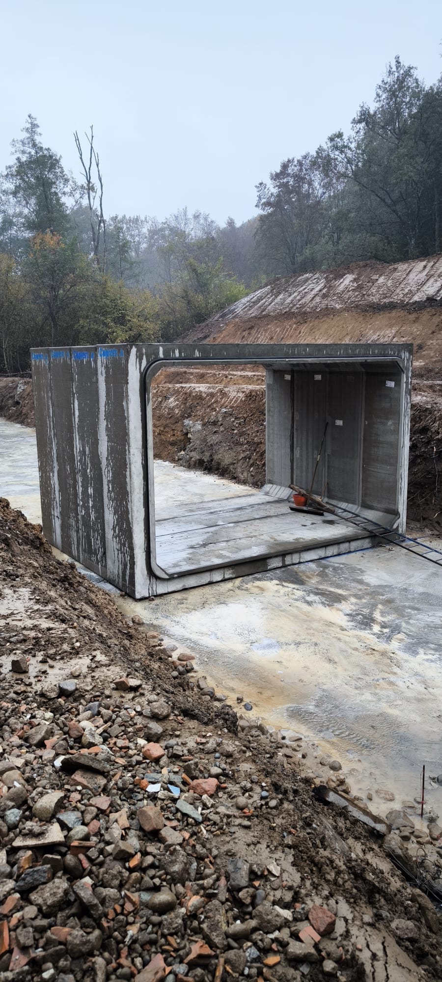 Dopo il completamento degli scavi e delle demolizioni e il raggiungimento del piano di posa, nella giornata odierna sono iniziate le operazioni di posa dei cunicoli prefabbricati.