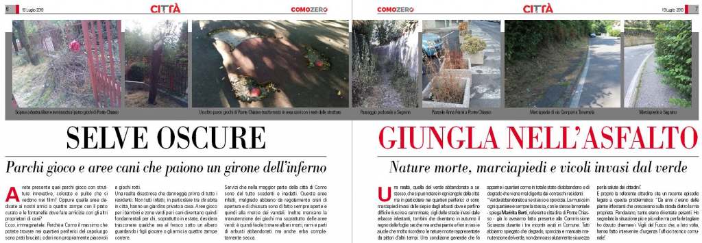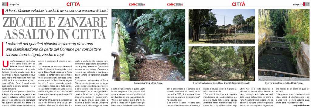 Nel cuore del giornale, ampio e diffuso reportage nei quartieri della città – da Ponte Chiasso a Rebbio e non solo – alle prese con zecche, topi, zanzare a mazzi e aree verdi divenute boscaglie.