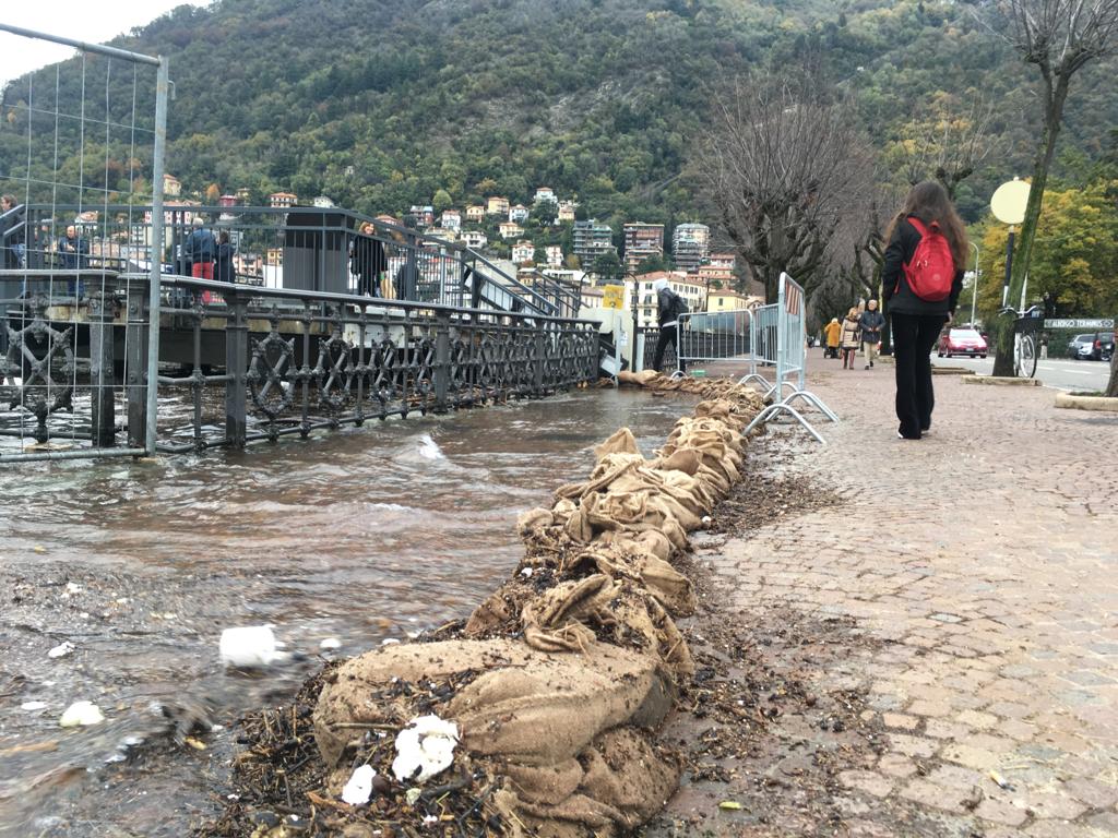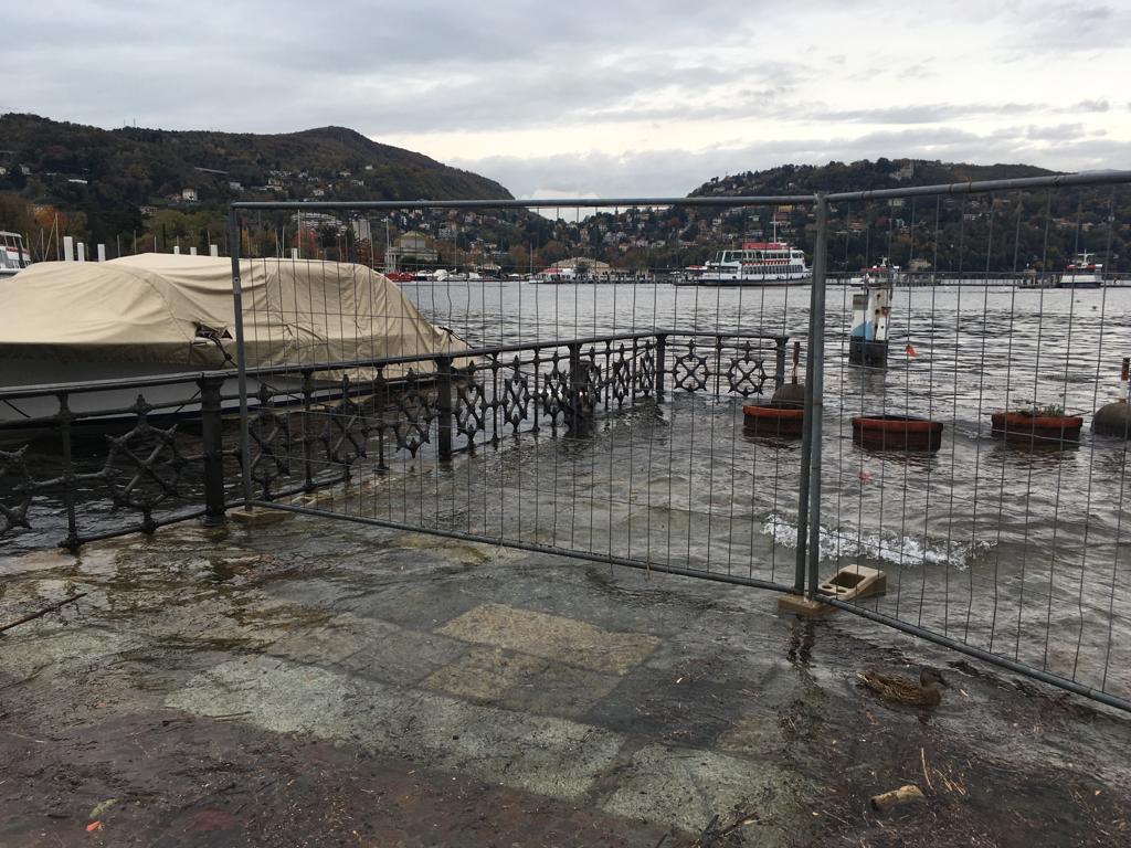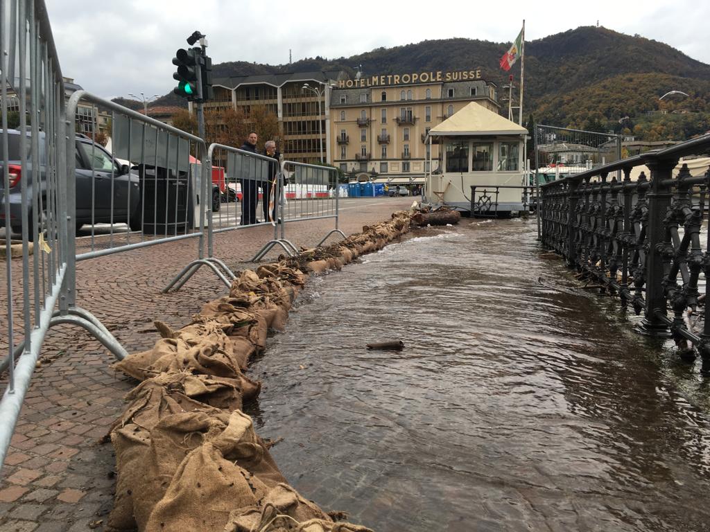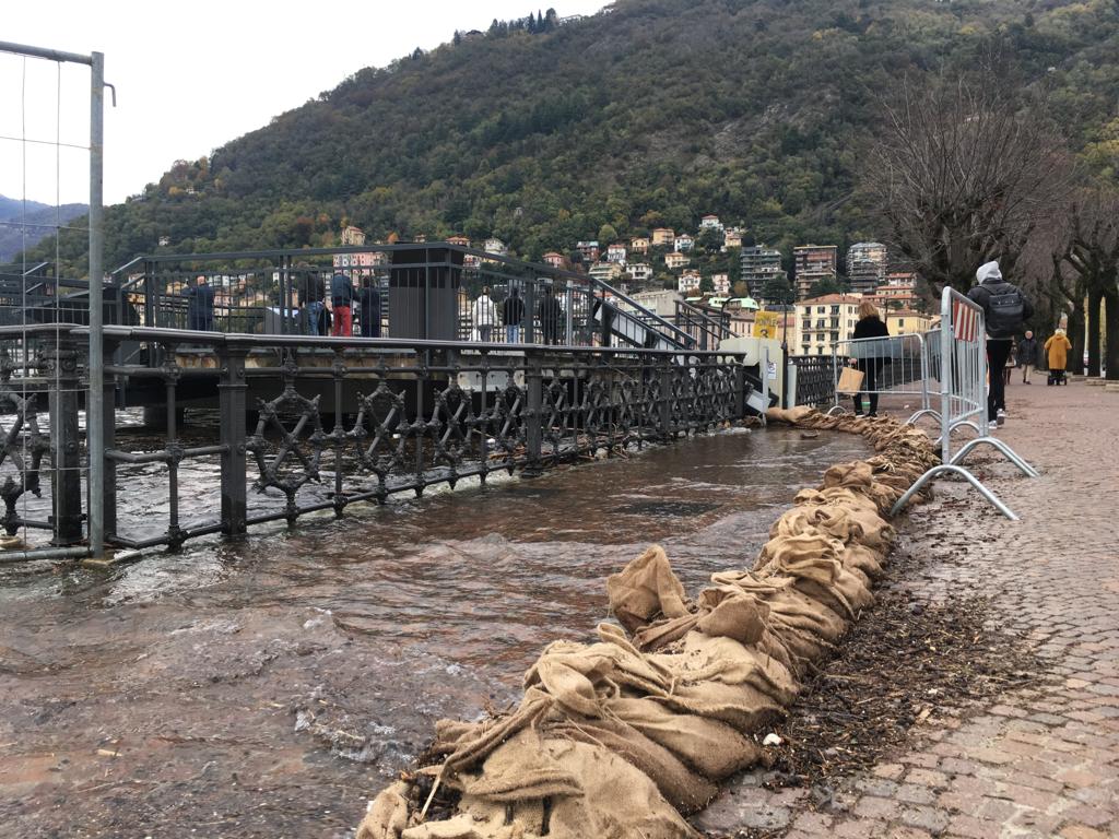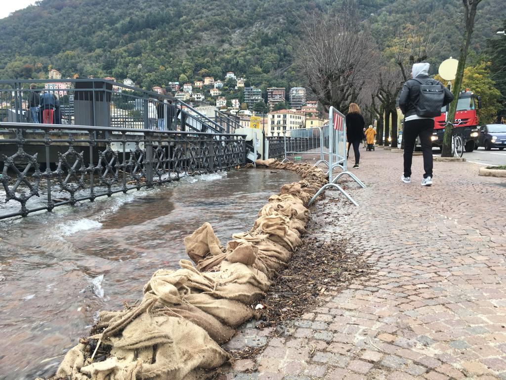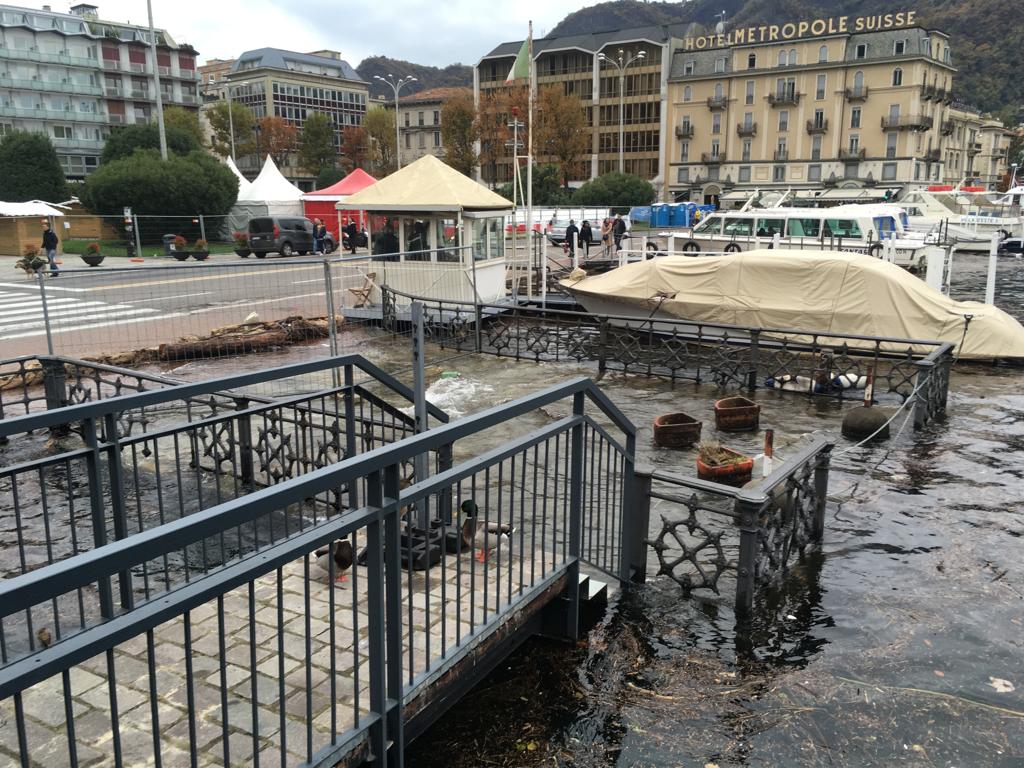 Le forti piogge degli scorsi giorni hanno portato all’innalzamento del livello del lago che, in piazza Cavour, sta lambendo il marciapiede esterno.