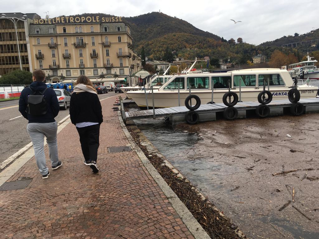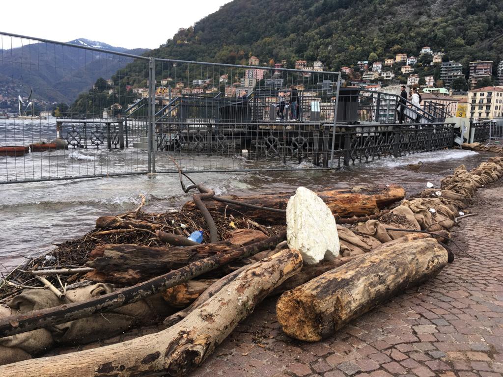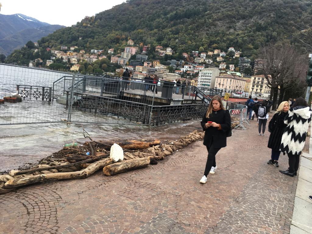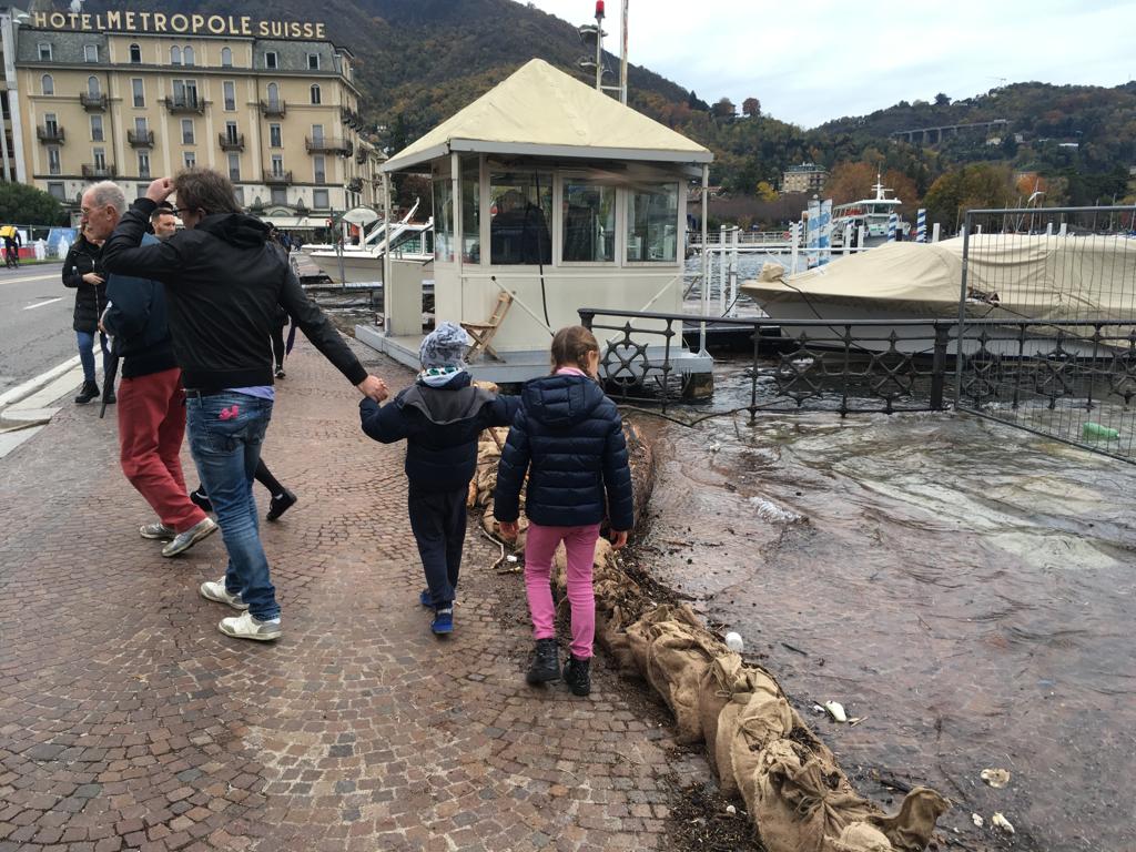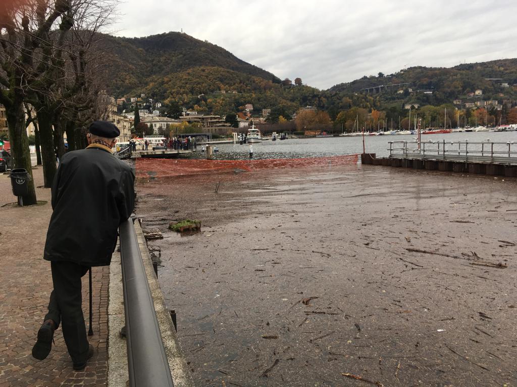 Le forti piogge degli scorsi giorni hanno portato all’innalzamento del livello del lago che, in piazza Cavour, sta lambendo il marciapiede esterno.