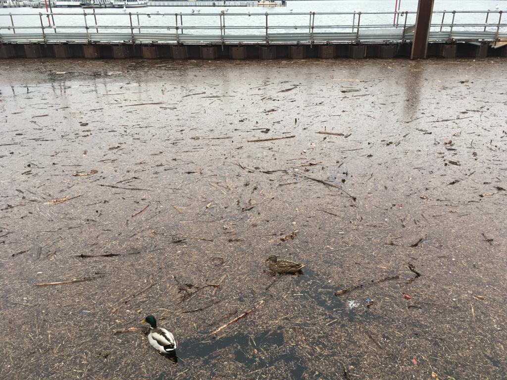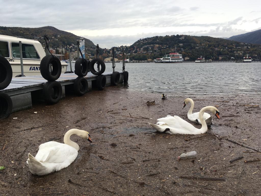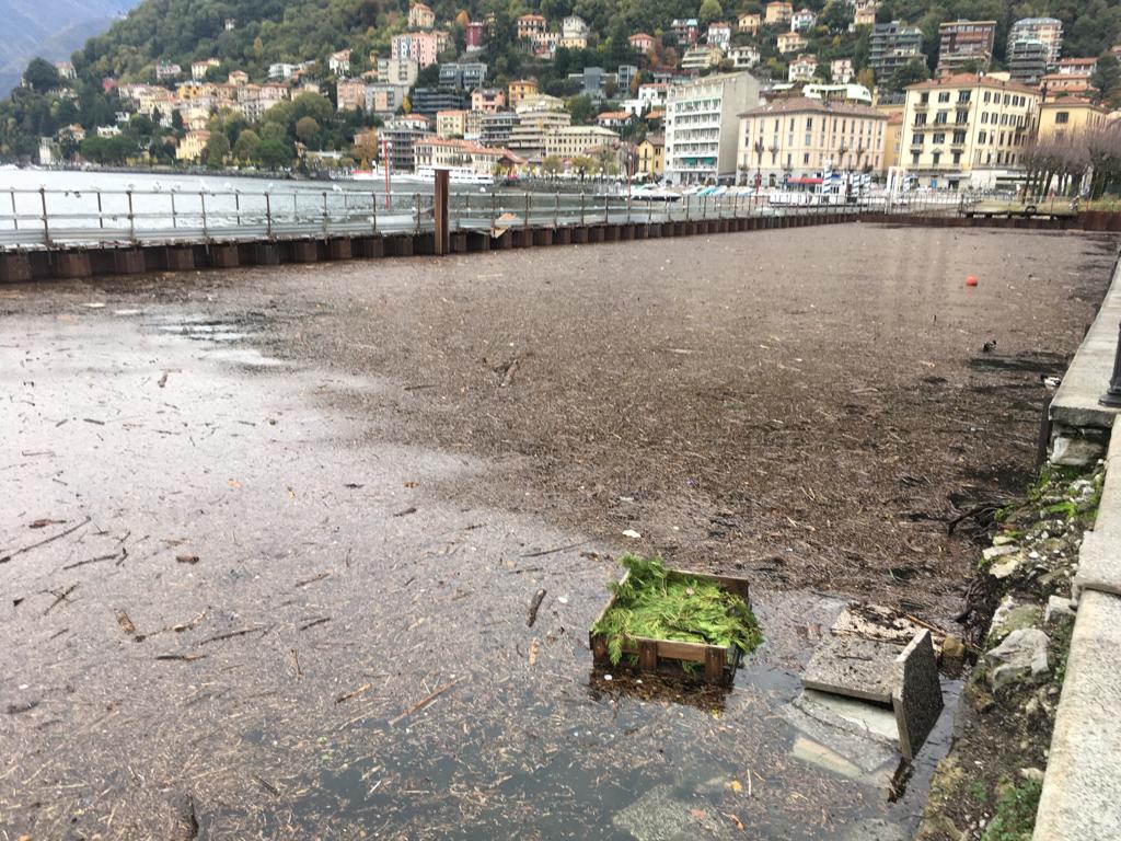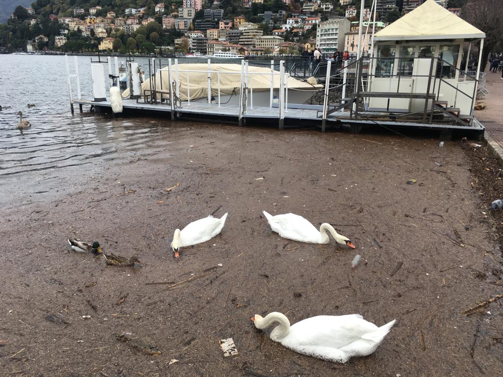 Anche il tratto d’acqua compreso tra lungolago e parancore è apparso coperto di materiali dilavati dalla pioggia.
