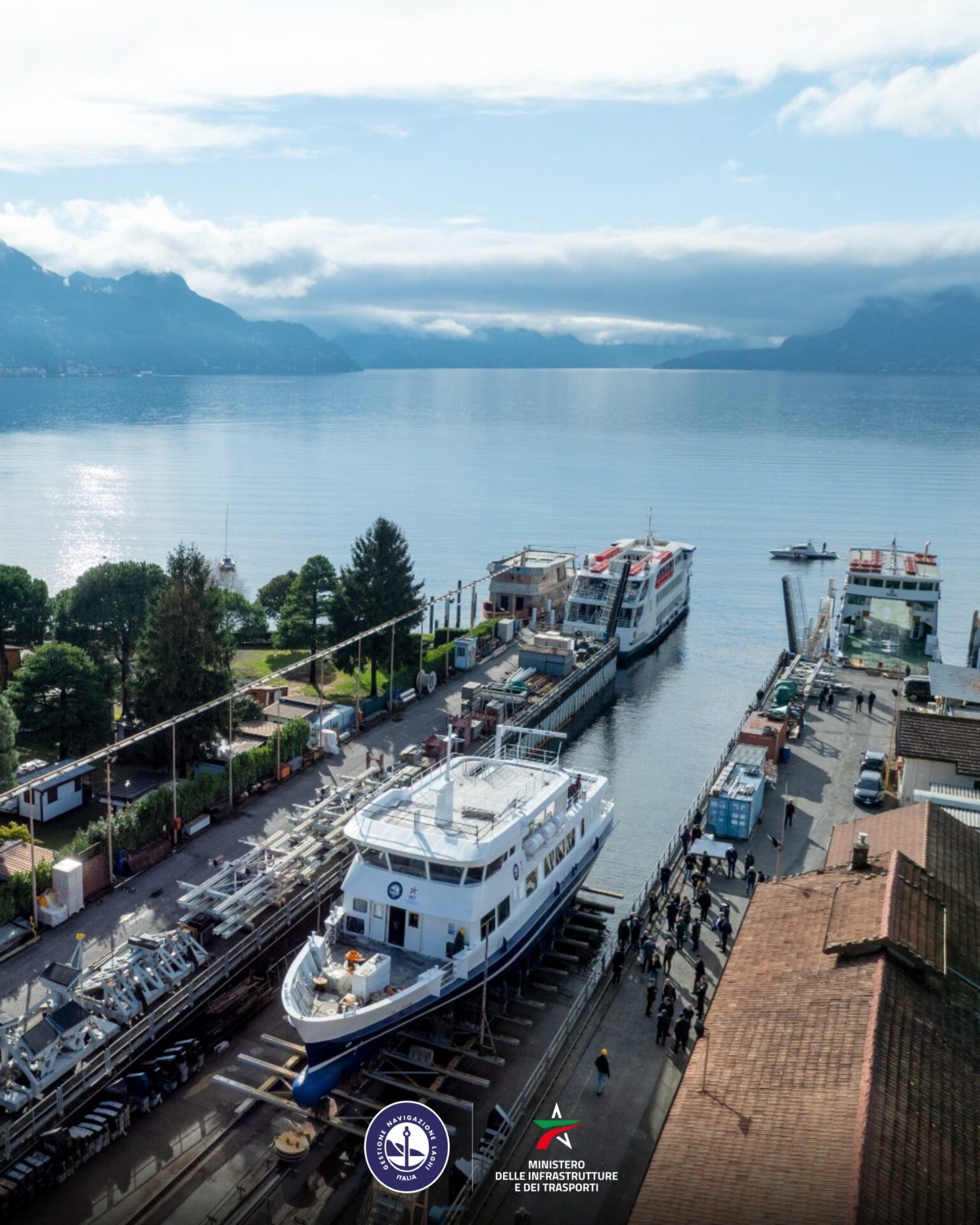 Il varo tecnico si è svolto presso il cantiere navale della Navigazione Lago di Como a Dervio, alla presenza delle Autorità locali e dei rappresentanti della società appaltatrice Cartubi Srl. La cerimonia ha previsto la benedizione dell’unità e la tradizionale rottura della bottiglia sulla prua, prima dell’immissione in acqua tramite scivolamento sul carro di alaggio per le verifiche preliminari su tenuta dello scafo e galleggiamento.