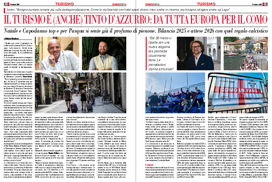 E se il Como – i tifosi facciano tutti gli scongiuri del caso – dovesse issarsi “in cima alla classifica in zona competizioni europee allora questo fenomeno si ingigantirebbe con sempre più turisti stranieri allettati dall’opportunità di venire in riva al lago in trasferta”. Cosa che sta già avvenendo da un paio d’anni almeno, come abbiamo già raccontato, con supporter azzurri di varie nazionalità (inglesi, spagnoli e francesi su tutti) che arrivano in città per seguire la squadra di Fàbregas nelle partite casalinghe e ne approfittano per una gita.